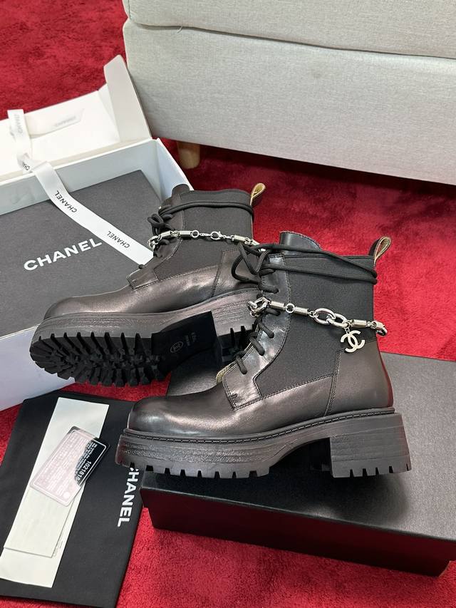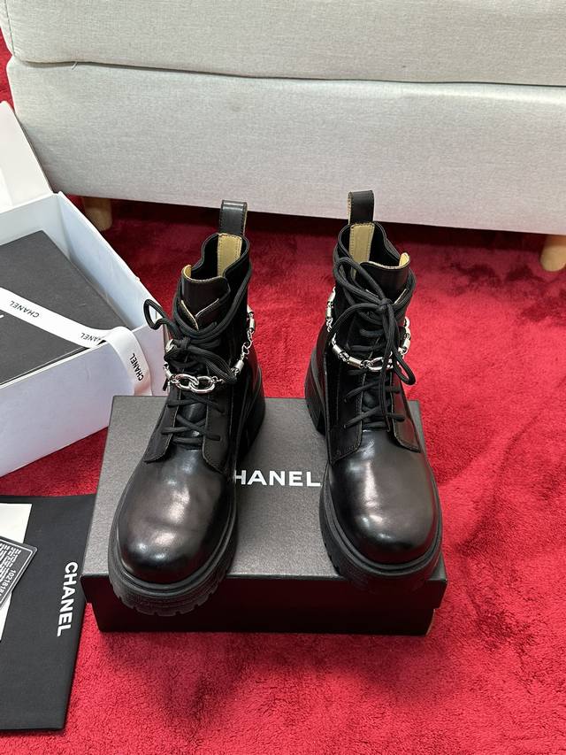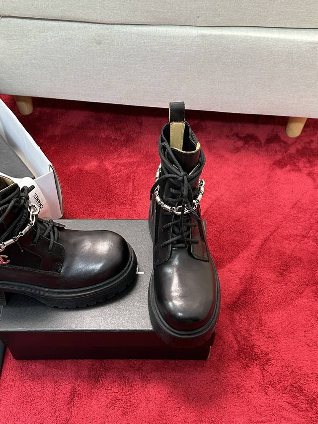 Round Toe Retro Double C Chain Thick-Soled Martin Boots