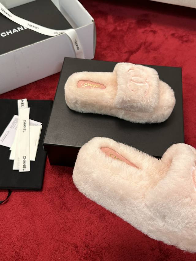 Factory Price DDD Chanel* | Classic Chanel All-Season Double C Furry Slippers DDD These furry slippers are just so cute~ DDD Soft and fluffy fur, comfortable and warm DDD 5cm thick sole, adds height and makes legs look longer DDD Perfect for autumn and winter, look casual and relaxed with socks DDD They look really good and stylish on your feet DDD Imported Australian genuine wool, delicate, soft and silky to the touch DDD Original mold rubber sole DDD Size: 35-39 40 41 Customized DDD