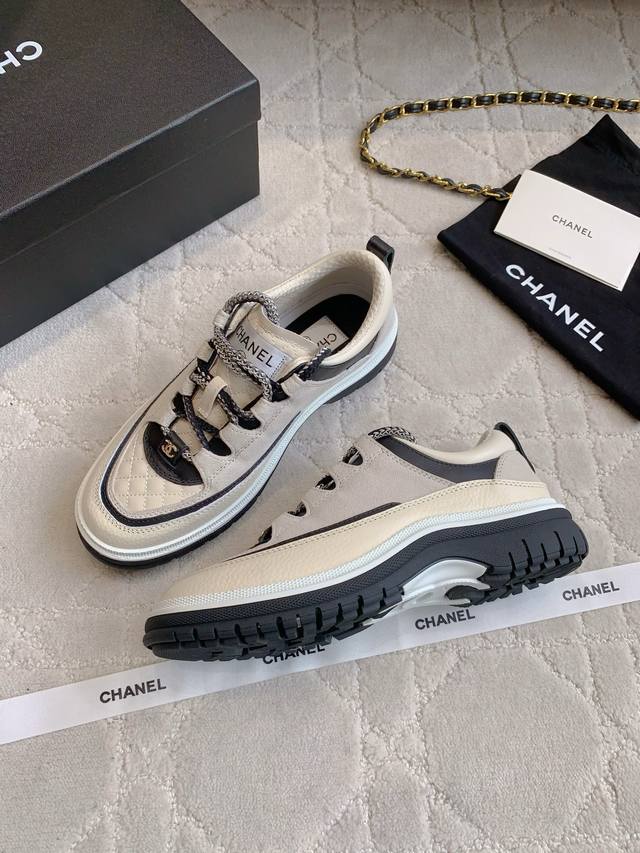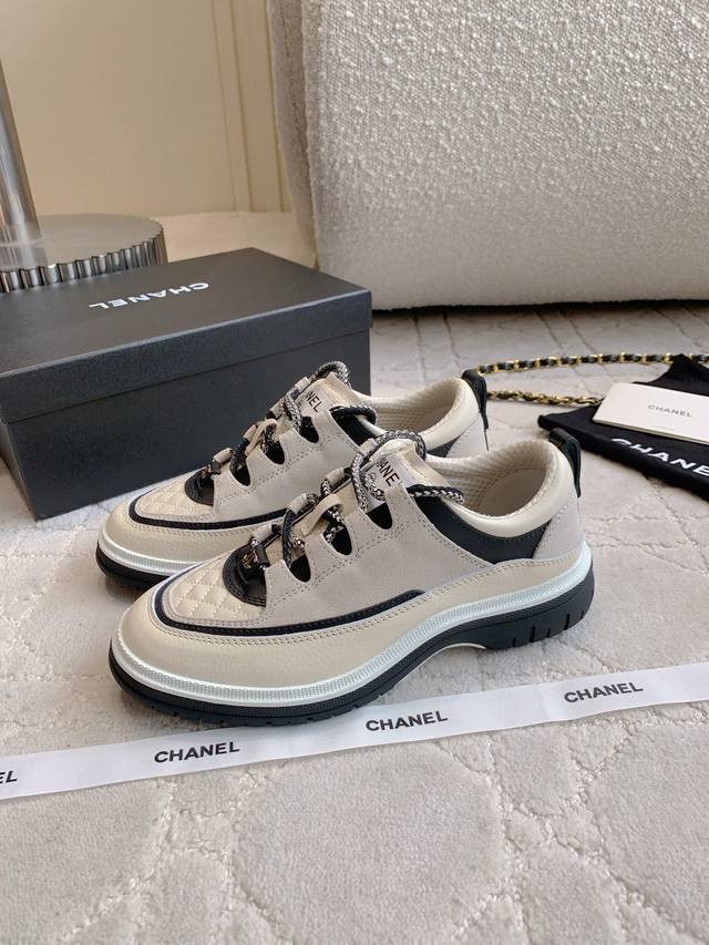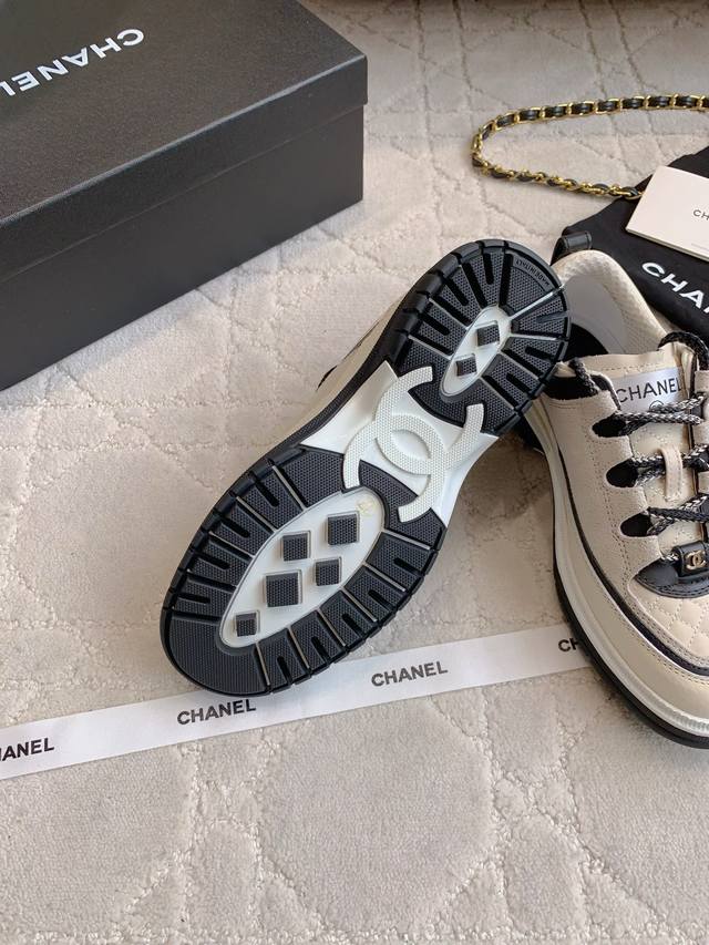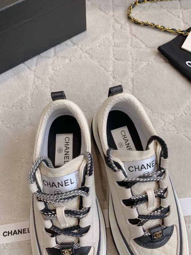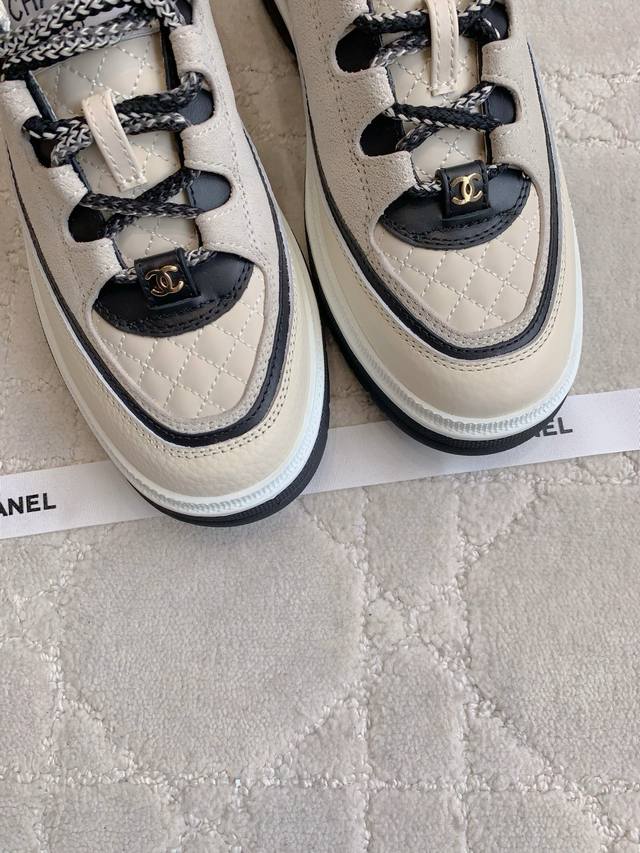 Chane* new diamond-patterned lace-up platform shoes. The diamond pattern meets lambskin for a cool, easy-to-match look. Classic colorway. 4cm thick sole for instantly elongated legs.