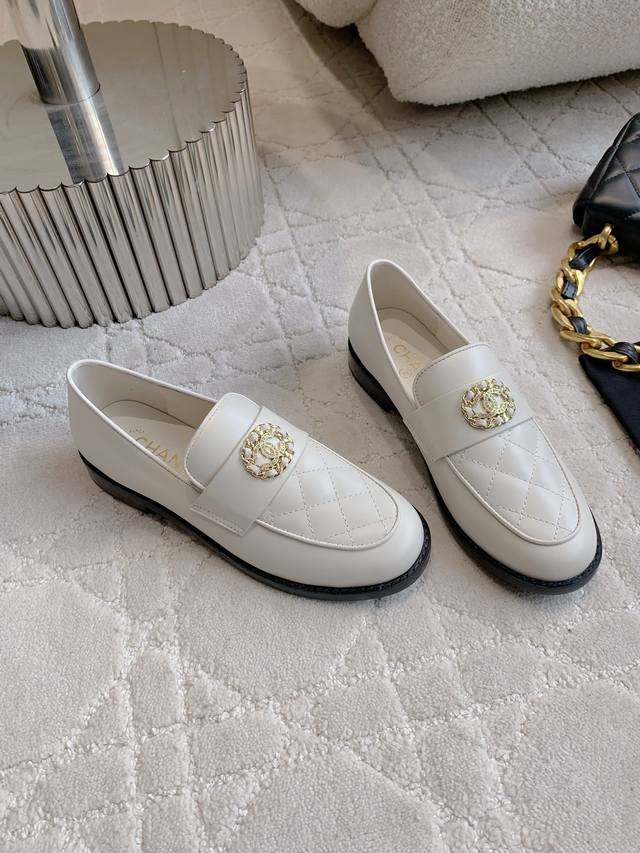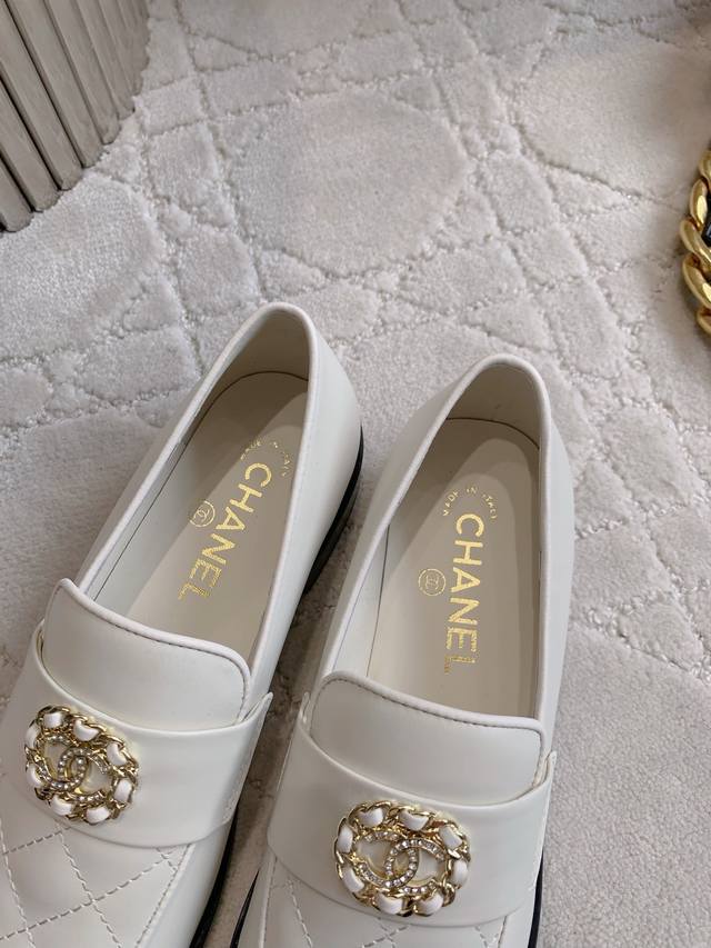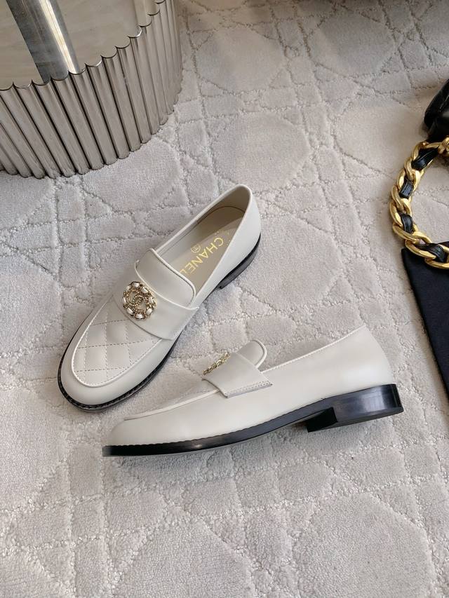Chane* new rhinestone buckle loafers. A classic, timeless silhouette with a double C logo. Exquisite, sophisticated, preppy style. Versatile and youthful, perfect for any outfit.