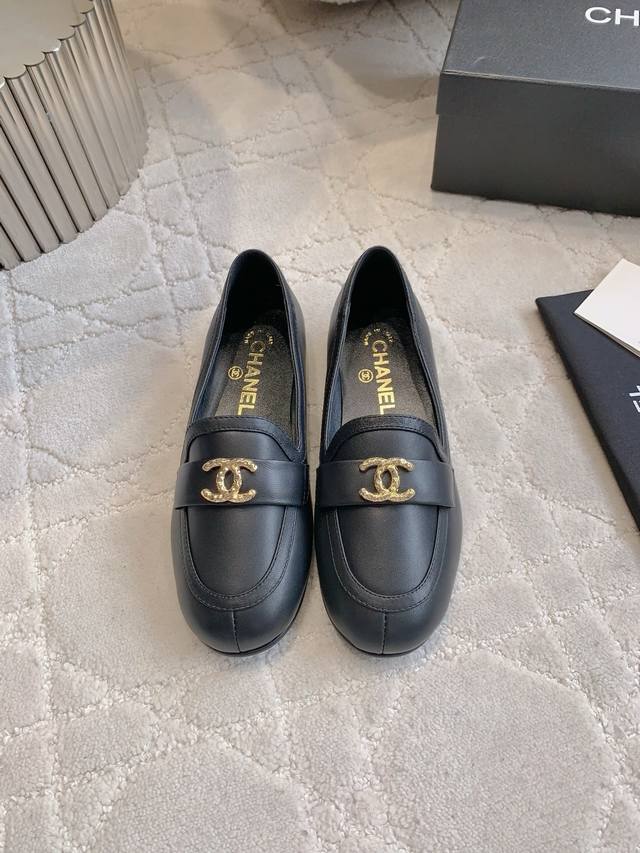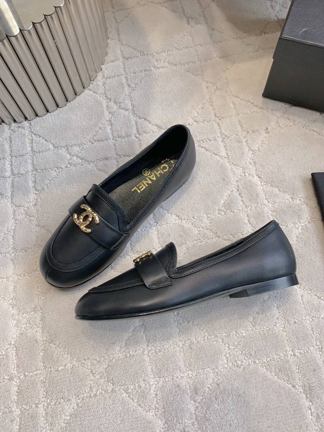 Chanel* Classic Round Toe Loafers, super cute and adorable, featuring a double C logo for a sophisticated and high-end feel. Versatile and youthful, suitable for all kinds of outfits.