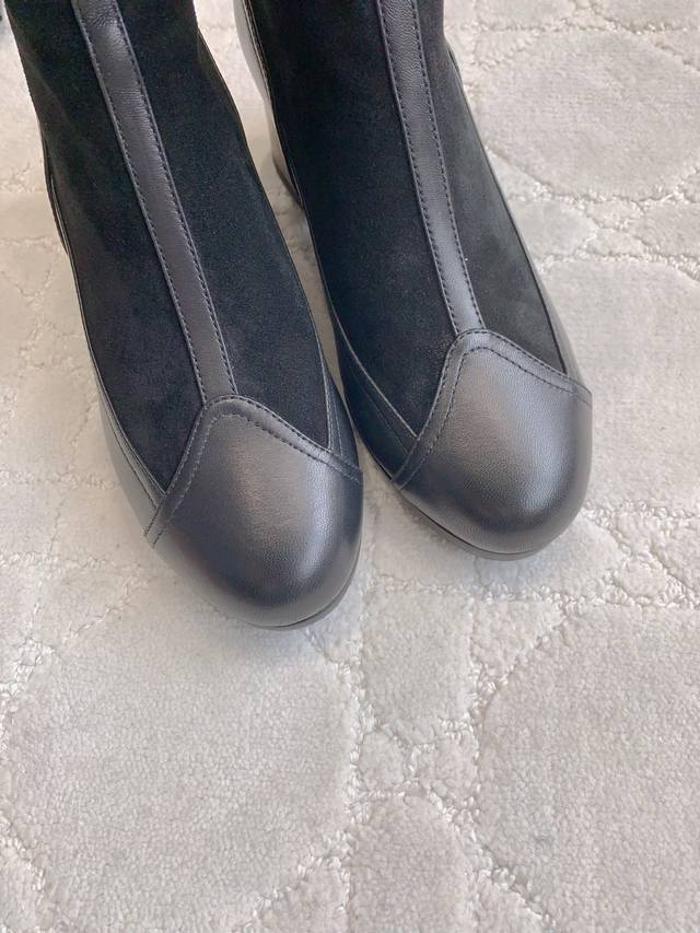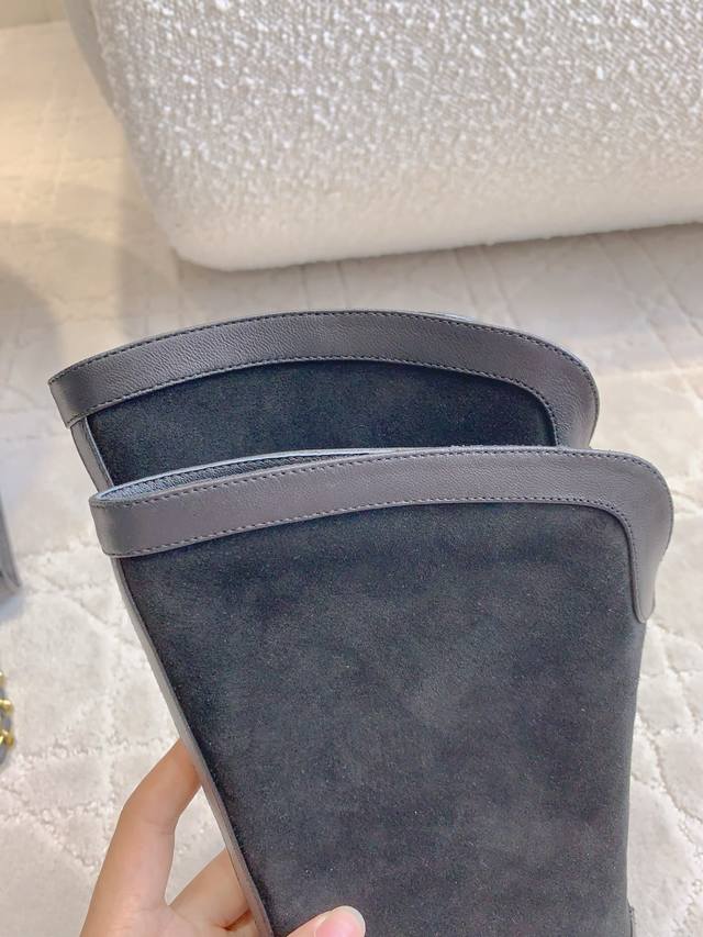 Selected delicate, cloud-like suede with an innate warmth, naturally draping along the calf line. The mid-calf height stops at the most leg-lengthening position. The back zipper design is a subtle and ingenious touch. The boot shape perfectly fits the leg curve without any redundancy, leaving only a clean look