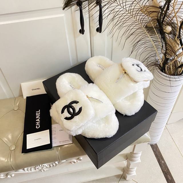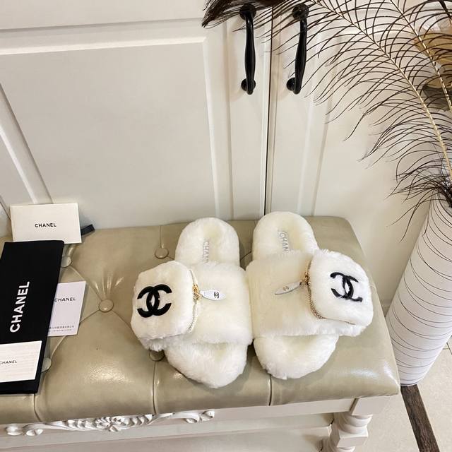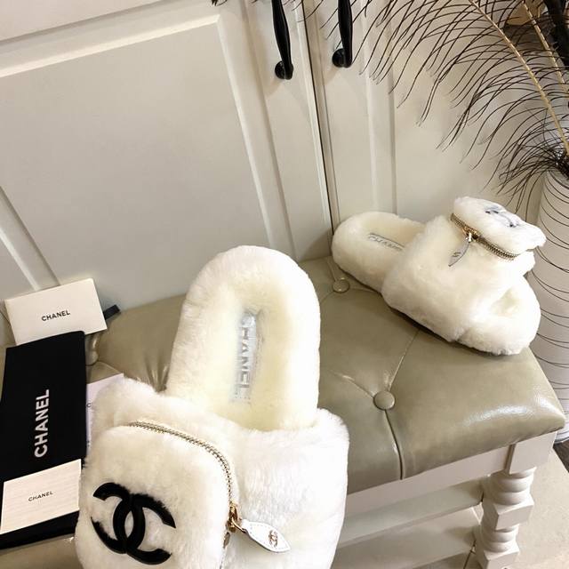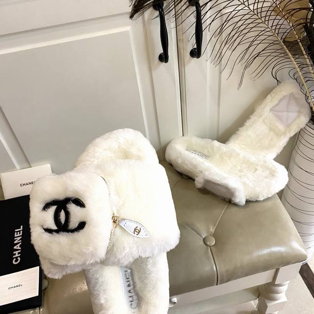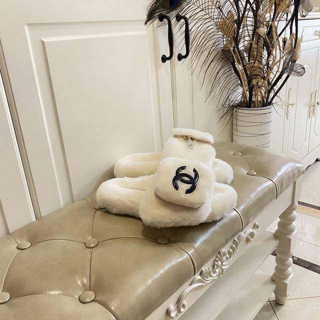 Factory price (Pp), Chanel Fall/Winter new style wool slippers, small pocket bag, wool exterior and lining, original wear-resistant and non-slip rubber sole, sizes 35-40, sizes 41 and 42 are custom-made and non-refundable (