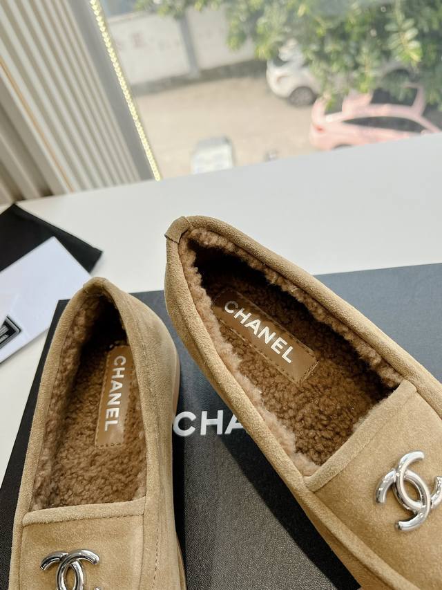 Chane*24S small Chanel new chain fisherman loafers furry shoes cotton shoes Mary Jane single shoes
