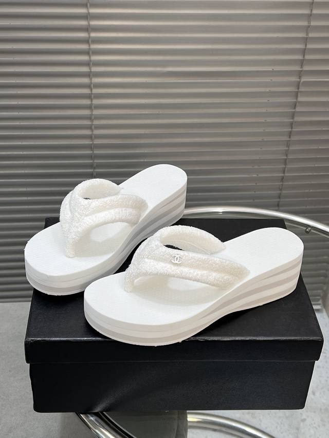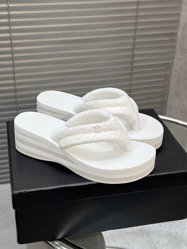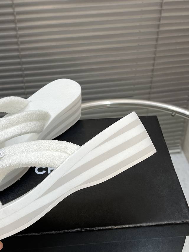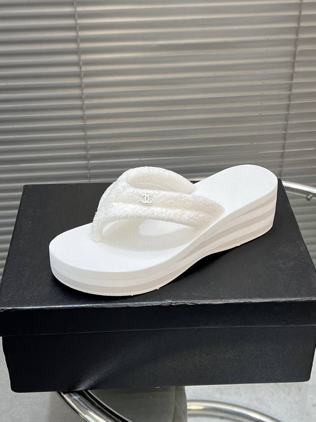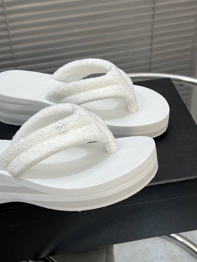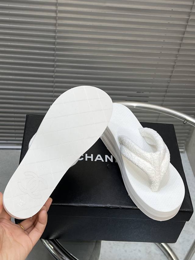 Factory-Direct Chanel 25S New Arrival Toe-Post Sandals Material: Original Towel Fabric Upper: Original Sole Height: 5Cm Sizes: 35-39, 40 (Custom-Made)