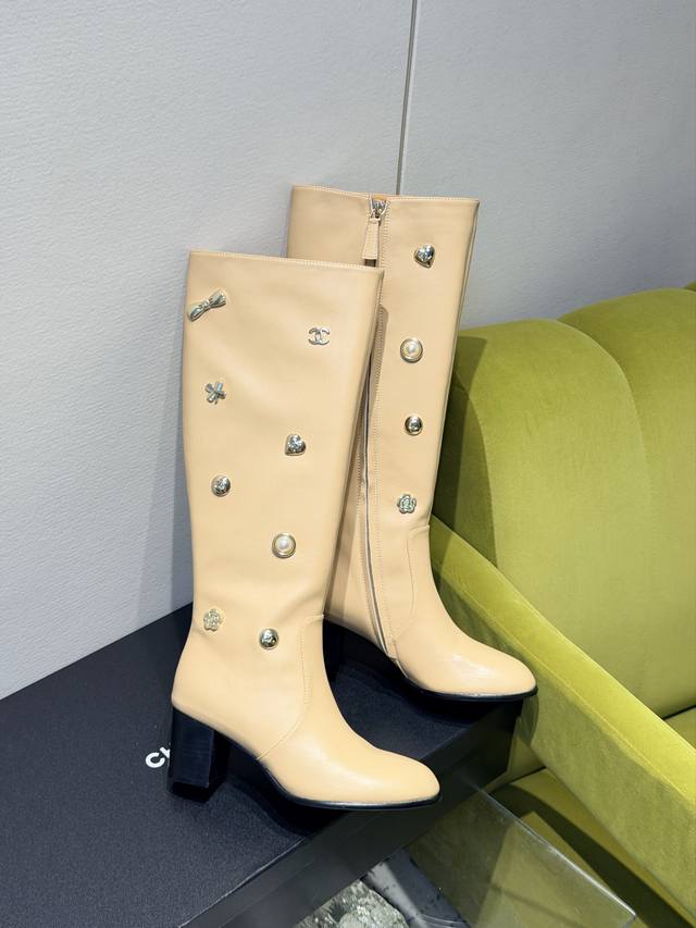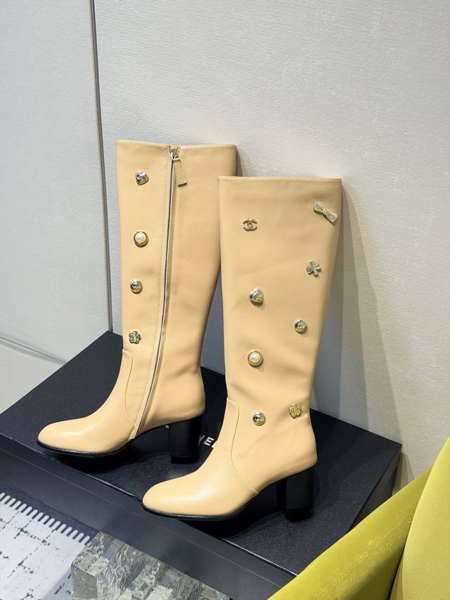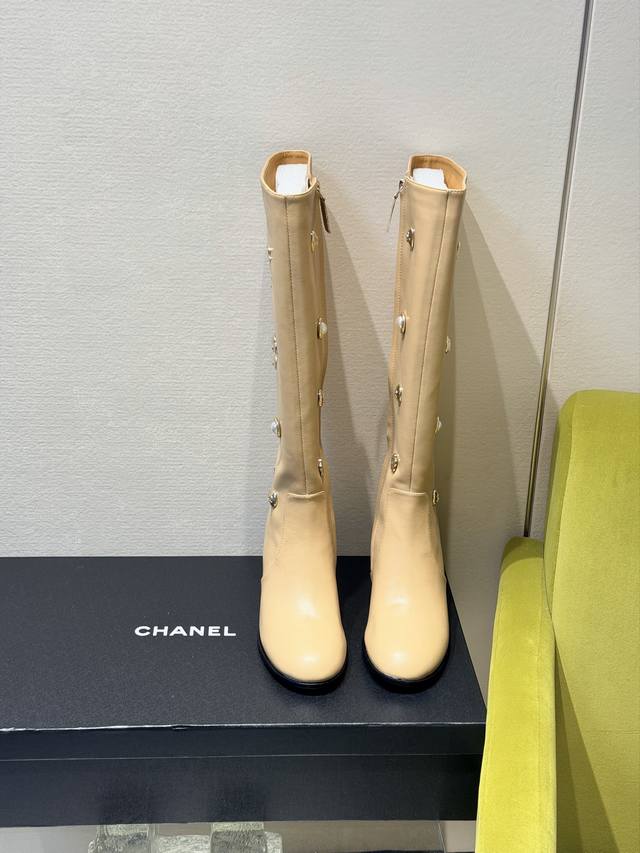G012 Chanel * Chanel Autumn/Winter New Pants Boots with Lettering - These riding boots are truly a symbol of cool and fashionable style. The Chanel lettering on the boot shaft is understated yet luxurious! Simple, stylish, individualistic, and sophisticated! The natural, flowing beauty has a timeless charm, perfect for showing off long legs even in winter! Upper: Imported double-layer calfskin Lining: Original lining Sizes: 35-39 Size 40. Custom orders are non-refundable and non-exchangeable Heel height: Approximately 7cm Sole: Italian genuine leather outsole