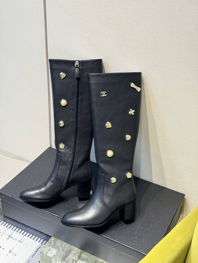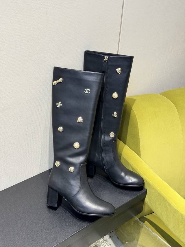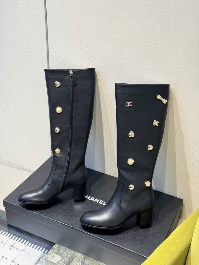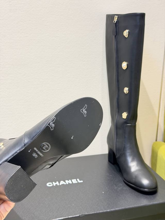 G012 Chanel * Chanel Autumn/Winter New Pants Boots with Lettering - These riding boots are truly a symbol of cool and fashionable style. The Chanel lettering on the boot shaft is understated yet luxurious! Simple, stylish, individualistic, and sophisticated! The natural, flowing beauty has a timeless charm, perfect for showing off long legs even in winter! Upper: Imported double-layer calfskin Lining: Original lining Sizes: 35-39 Size 40. Custom orders are non-refundable and non-exchangeable Heel height: Approximately 7cm Sole: Italian genuine leather outsole