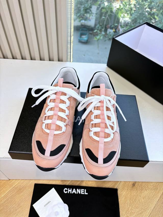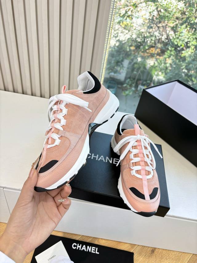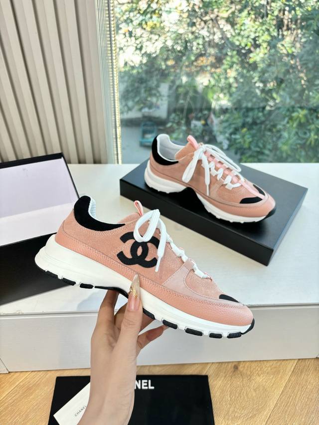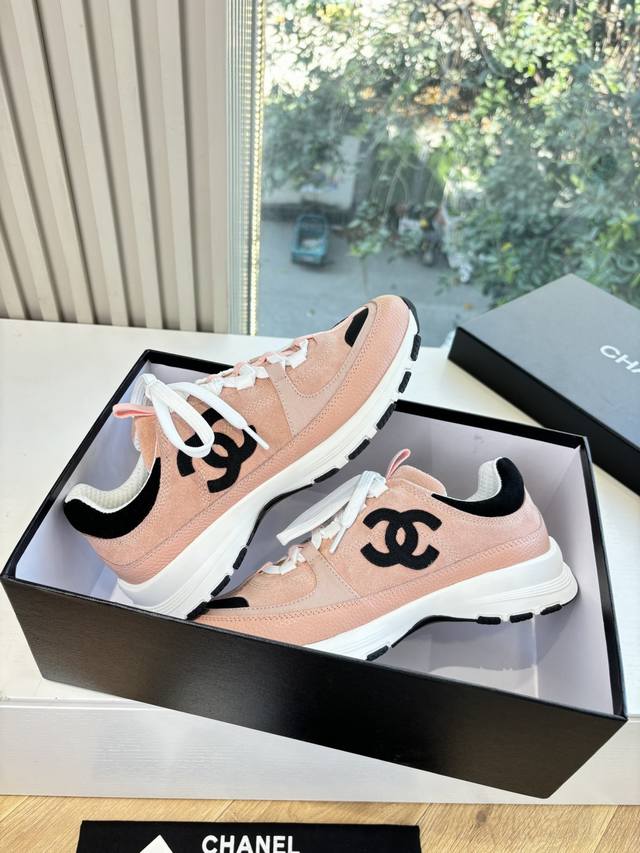 G059 What you see is what you get Chanel 2025 New Style Suede Round Toe Panda Diamond Pattern Thick Sole Sneakers Fashion Height Increasing Shoes Casual Shoes Material: Imported Suede Cowhide Lining: Original Lining Sole: Original Mold Outsole Full Packaging: Sizes 35-40, Sizes 40-41 are custom-made and non-refundable