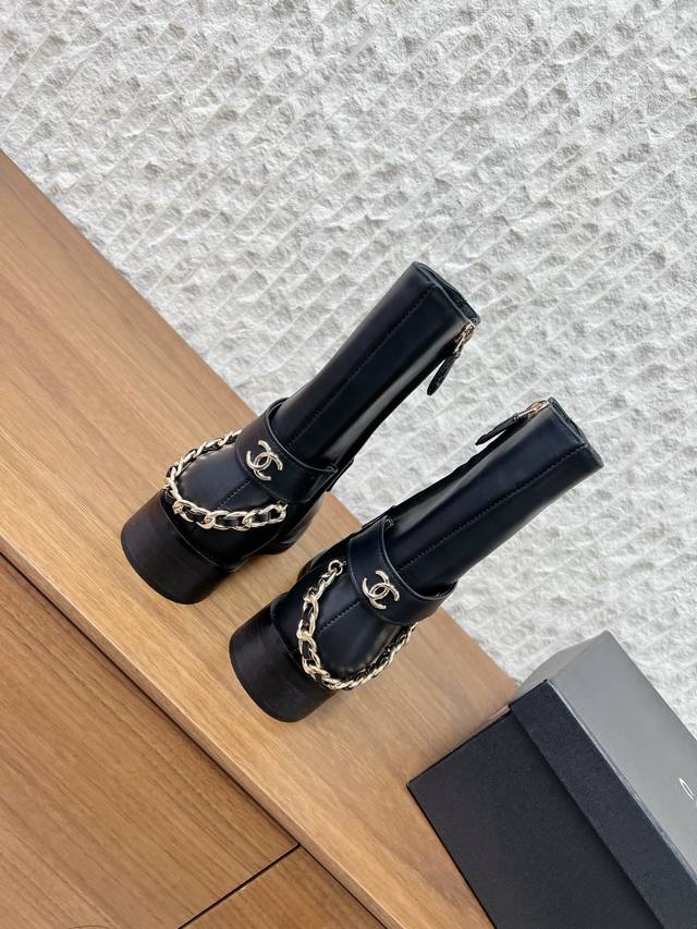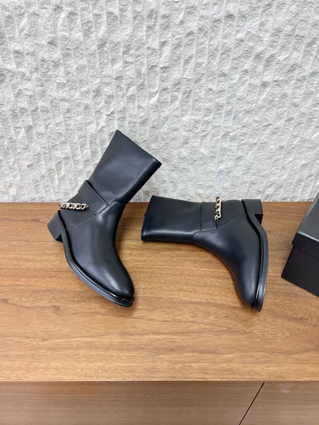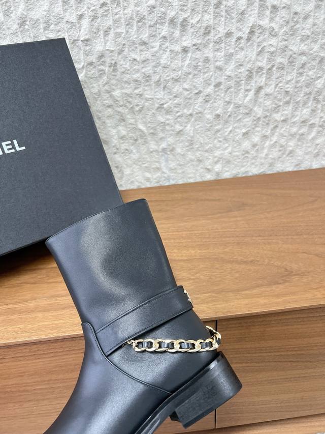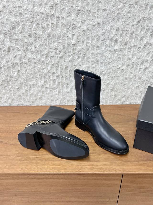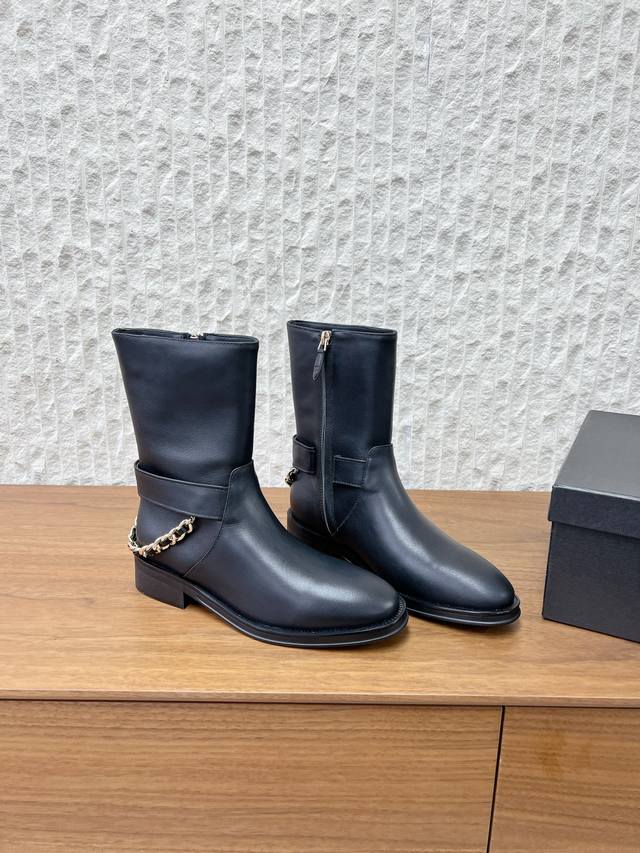 G086 Chanel 25Ss Autumn/Winter New Classic Chain Riding Boots DDD This year's best combat boots are definitely these, they're so cool DDD The most striking feature is the chain at the back of the shoe DDD The design is both cool and feminine, truly amazing DDD The boot shaft is straight and stylish without sacrificing softness, and it suits all body types DDD The exquisite logo embellishment adds a touch of high-end elegance without being tacky DDD They look cool and stylish on the feet and also make your legs look longer DDD Upper: Made of original imported calfskin DDD Insole: Sheepskin DDD Outsole: Original custom Italian rubber outsole DDD Size: 35-39 40.41 Custom orders are non-refundable and non-exchangeable DDD
