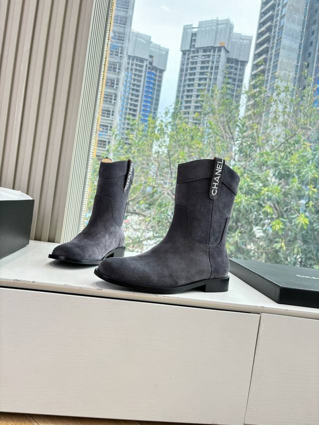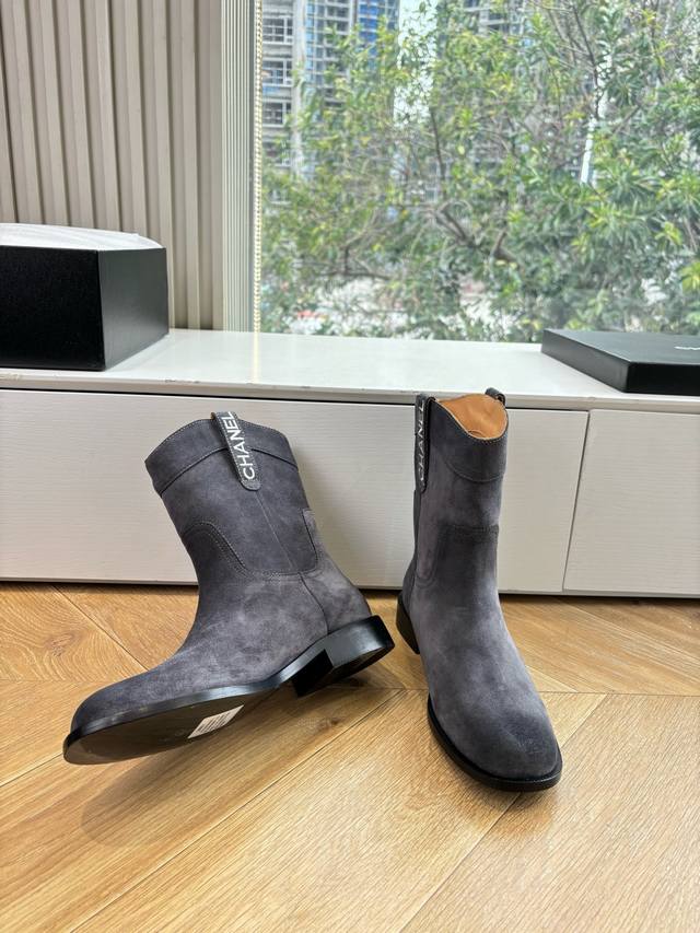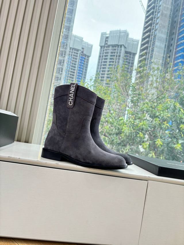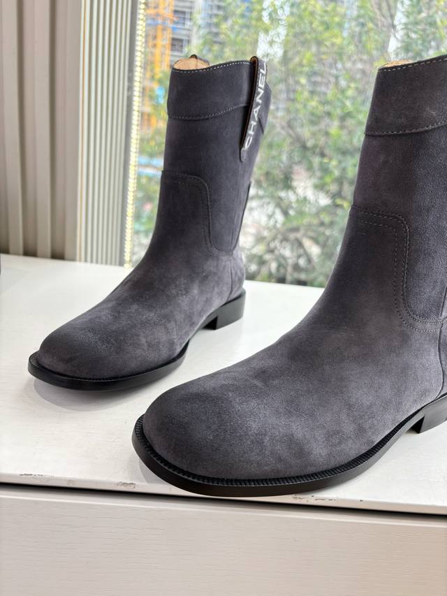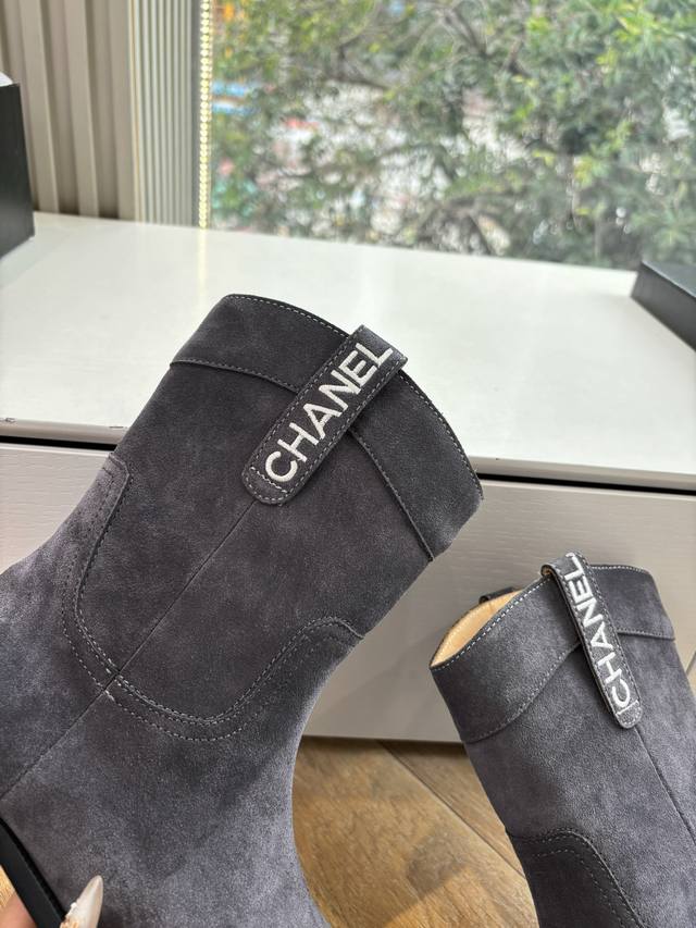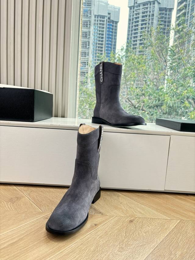 G302 Chanel Chelsea Boots (Autumn/Winter), New Style, Rider Boots. These riding boots are truly a symbol of cool and fashionable style. The Chanel logo on the boot shaft adds a touch of understated luxury! Simple, stylish, individualistic, and sophisticated! The natural, flowing beauty has a timeless charm, perfect for showing off long legs even in winter! Upper: Suede Lining: Cowhide Sizes: 35-39, 40, 41 (custom orders, no returns or exchanges) Sole: Original Sole