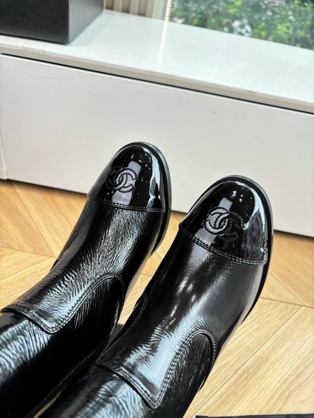 G318 Chanel * Chanel Autumn/Winter New Riding Boots. These riding boots are truly a symbol of cool and fashionable style. The Chanel logo embellishment on the boot shaft is understated yet luxurious! Simple, stylish, individualistic, and sophisticated! The natural, flowing beauty has a timeless charm, perfect for showing off long legs even in winter! Upper: Imported cow patent leather. Lining: Leather lining. Sizes: 35-39, 40, 41, 42. Custom orders are non-refundable. Sole: Italian genuine leather outsole.