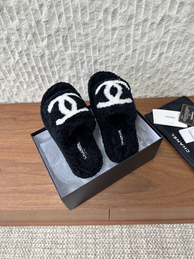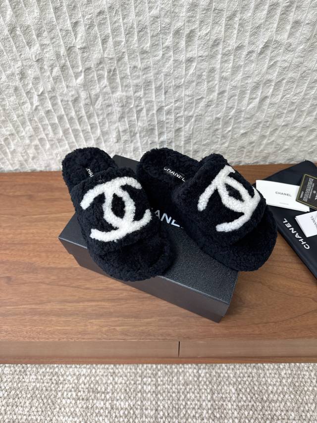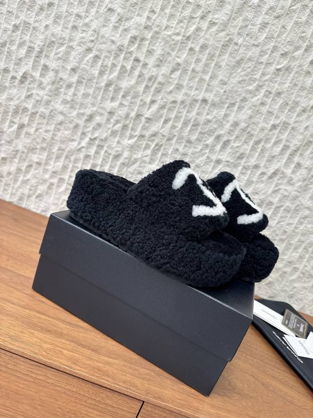 G576 Chanel 25Ss autumn and winter new classic double C thick-soled furry slippers