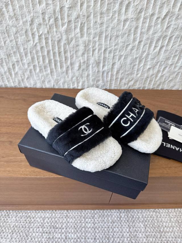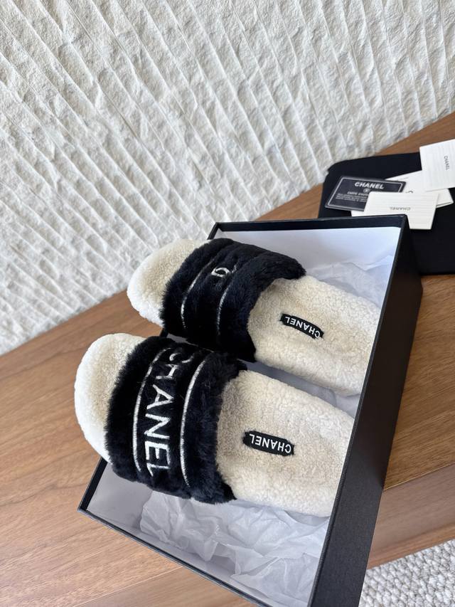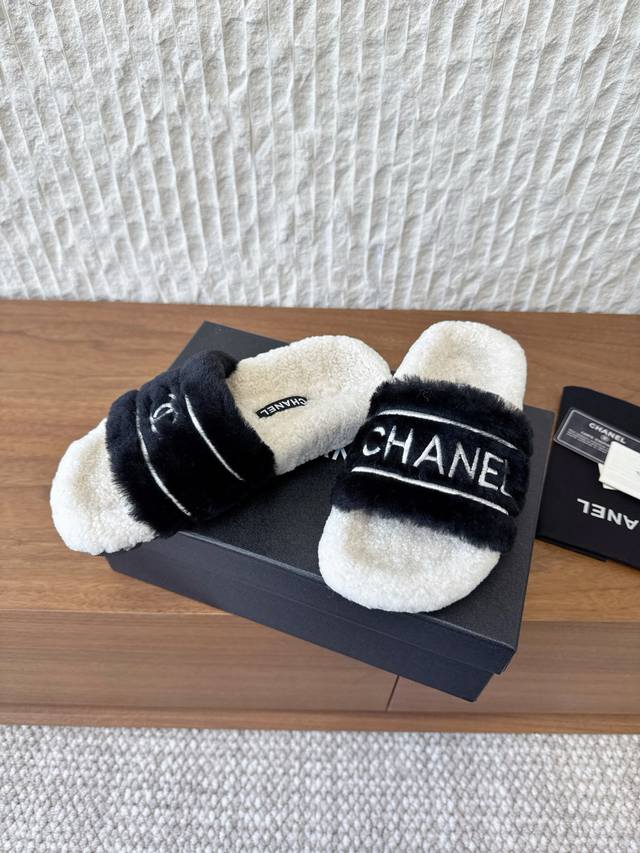 G751 Chanel 25Ss Fall/Winter New Wool Slippers DDD The upper features classic lettering, and the entire shoe is fluffy and incredibly comfortable DDD The feel on your feet is absolutely irresistible! DDD It's simply the perfect winter shoe. DDD Upper: Made with original imported wool DDD Insole: Wool DDD Sole: Original custom rubber outsole DDD Sizes: 35-39 40 Made-to-order, no returns or exchanges DDD