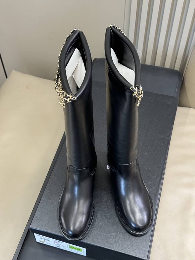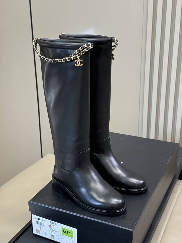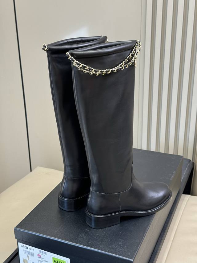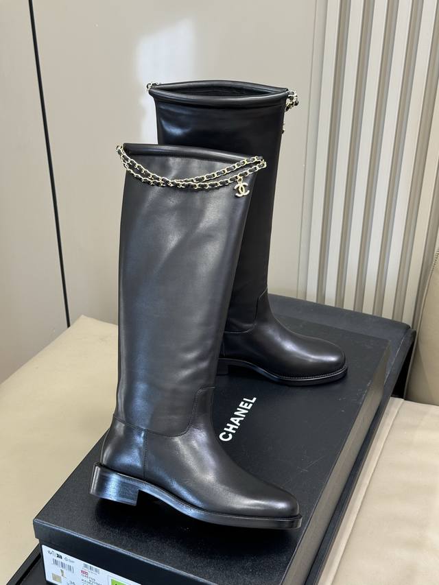 Genuine Leather Chanel 25B New Arrival ~ New Chanel 25B Long Boots Basic ankle boots with a classic chain detail for a fresh look! Exquisite and beautiful! Comfortable, versatile, and suits everyone. Leather upper, Italian imported leather sole. Sizes 35-41