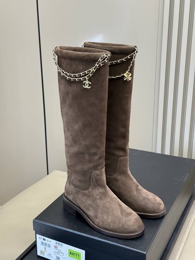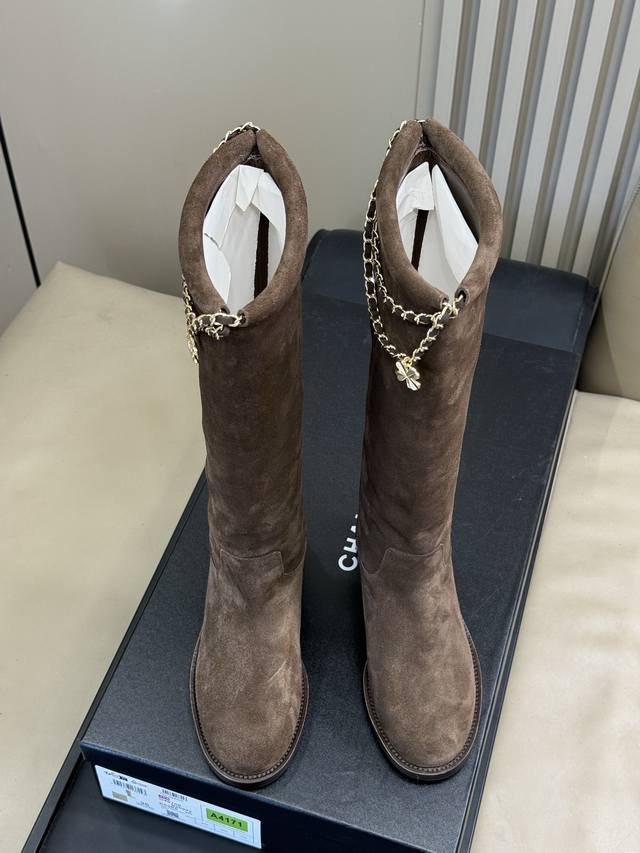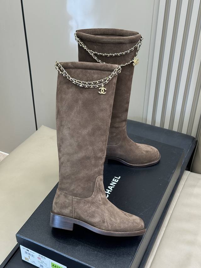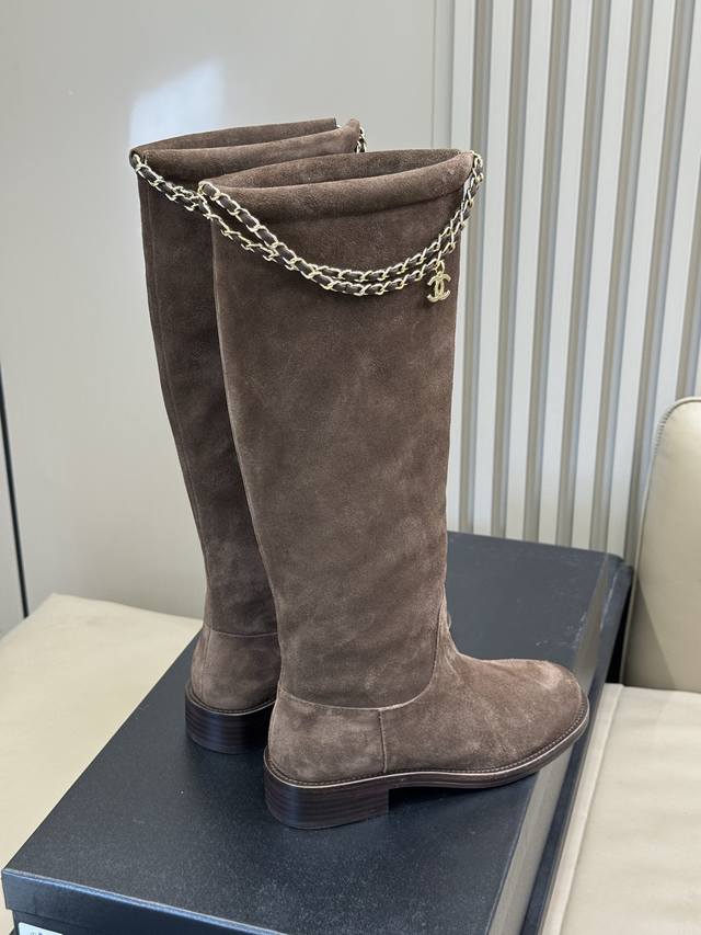 Genuine Leather Chanel 25B New Arrival ~ New Chanel 25B Long Boots Basic ankle boots with a classic chain detail for a fresh look! Exquisite and beautiful! Comfortable, versatile, and flattering for all body types. Leather upper, Italian imported leather sole. Sizes 35-41