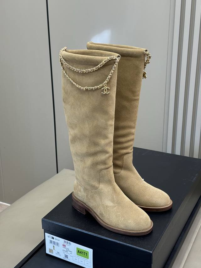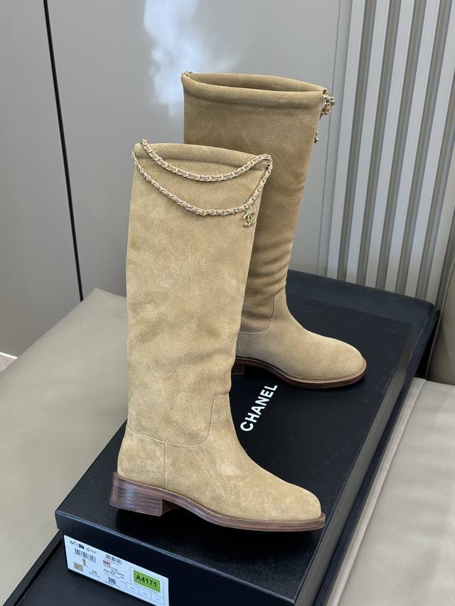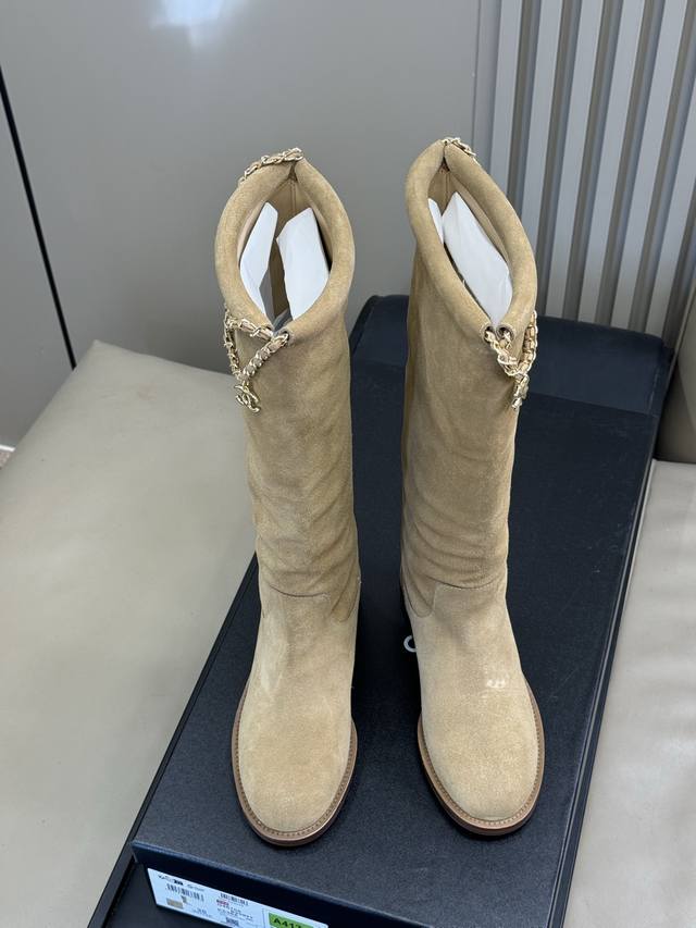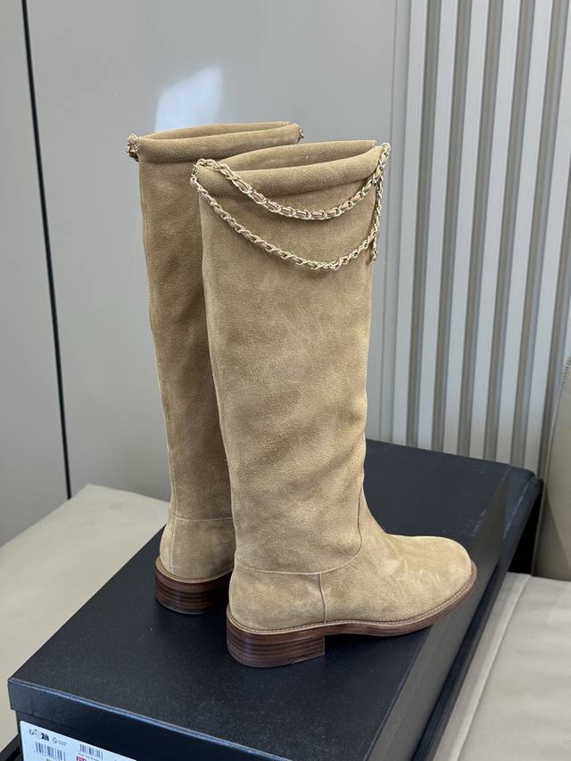 Genuine Leather Chanel 25B New Arrival ~ New Chanel 25B Long Boots Basic ankle boots with a classic chain detail for a fresh look! Exquisite and beautiful! Comfortable, versatile, and suits everyone. Leather upper, Italian imported leather sole. Sizes 35-41