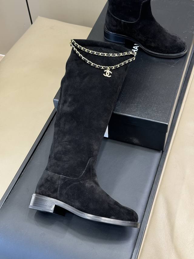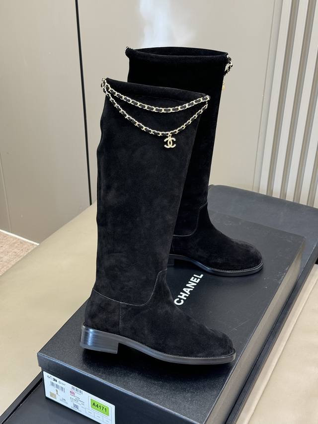 Genuine Leather Chanel 25B New Arrival ~ New Chanel 25B Long Boots Basic ankle boots with a classic chain detail for a fresh look! Exquisite and beautiful! Comfortable, versatile, and flattering for all body types. Leather upper, Italian imported leather sole. Sizes 35-41