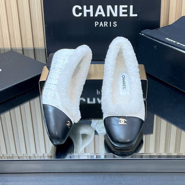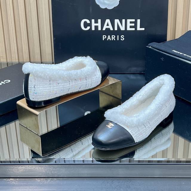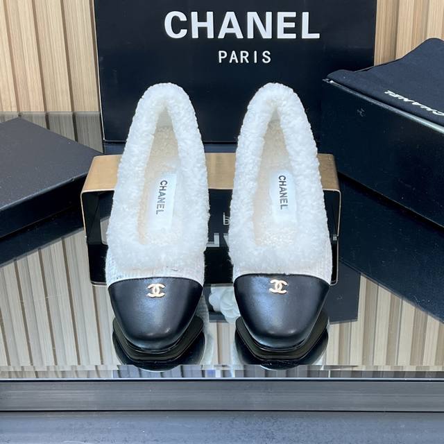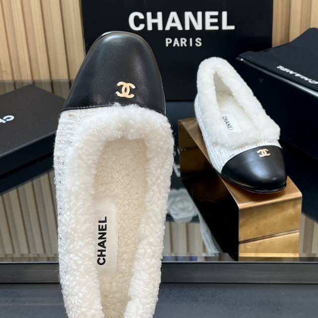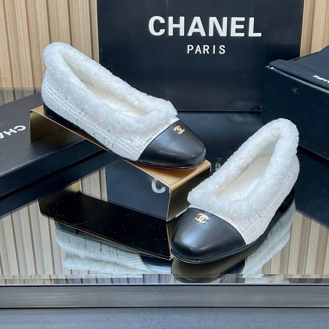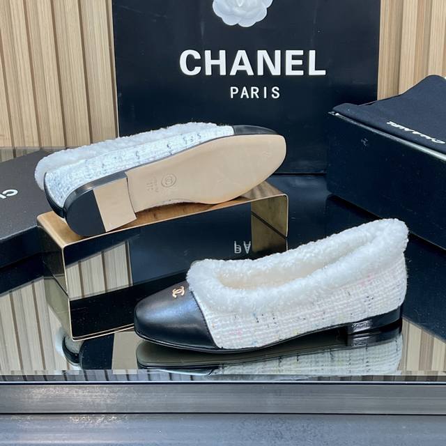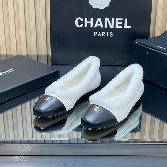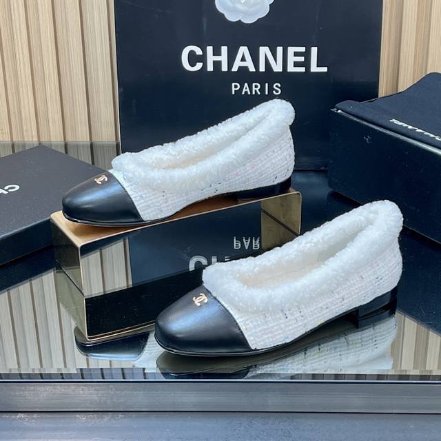 Genuine Wool Lined Chanel Lambswool Ballet Flats A super hot seller from Chanel boutiques, a favorite of online influencers and fashionistas, receiving rave reviews on social media. Highly popular, breathable, and perfect for spring and summer. This style evokes a girl's desire for fashion. Made with the latest suede material in classic black and white, these shoes are incredibly stylish and easy to care for. Material: Original custom material. Lining: Custom warm lambswool. Sole: Original molded genuine leather outsole. Sole thickness: 1.5cm. Size: Women's 35-39, sizes 40 and 41 available.