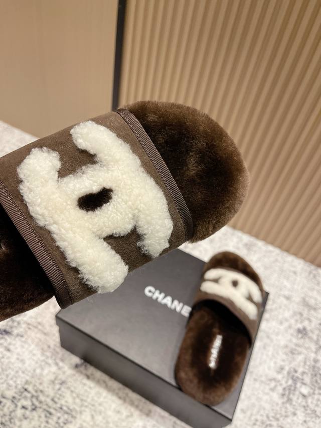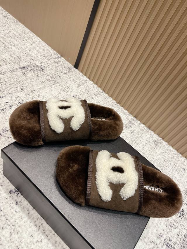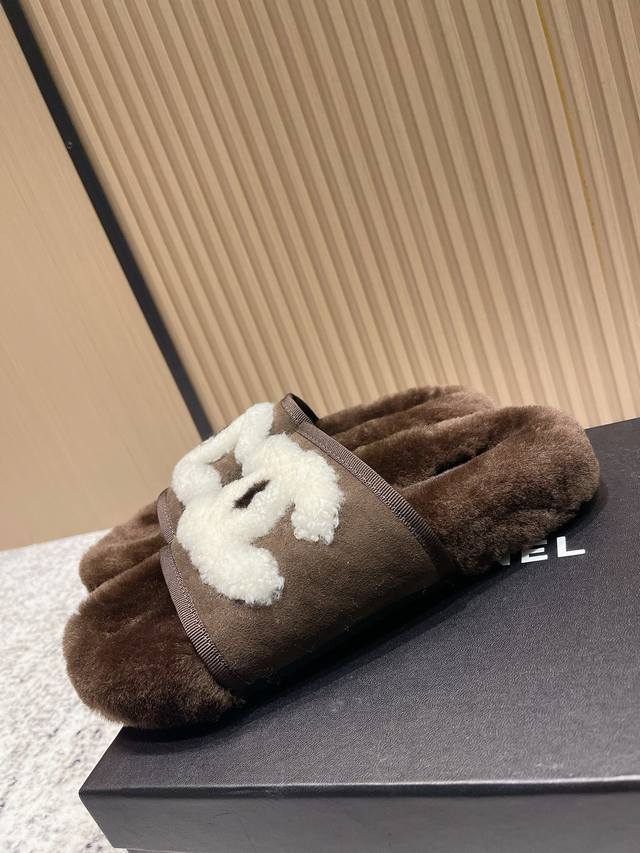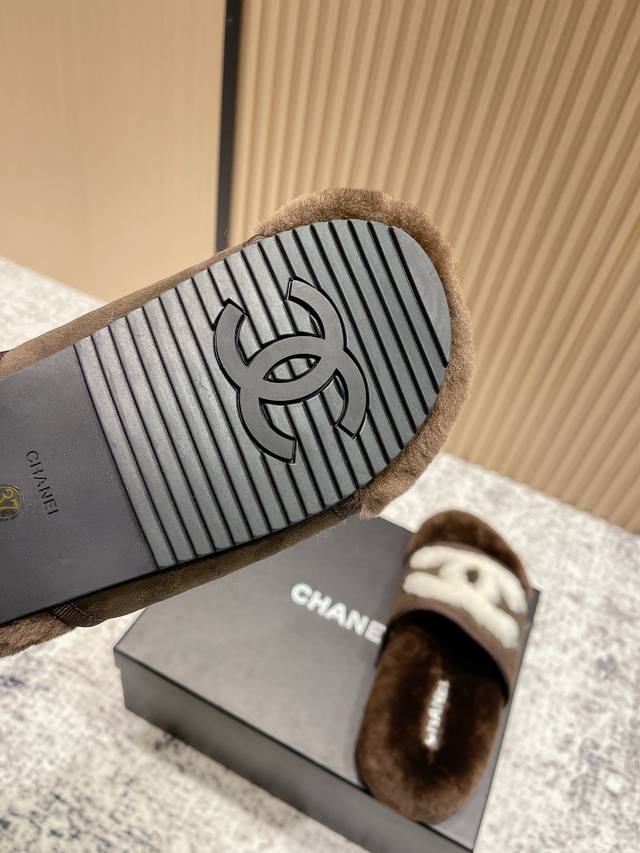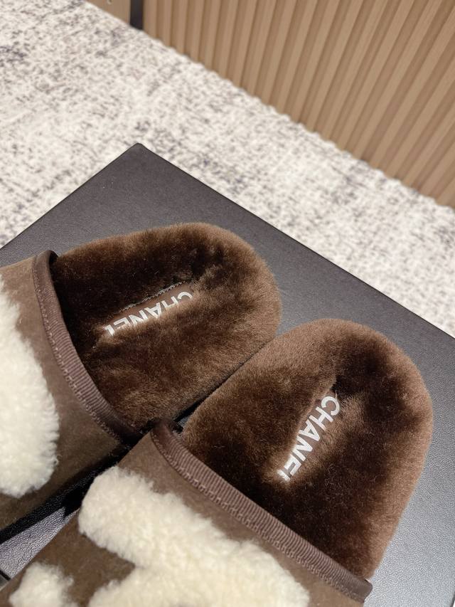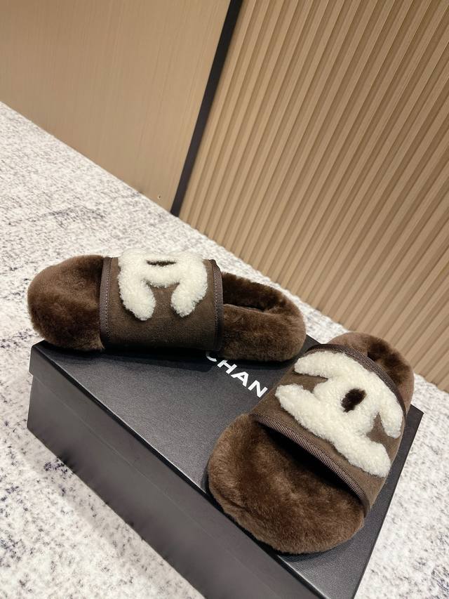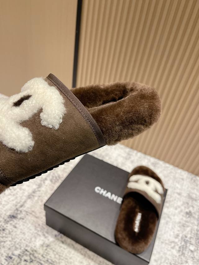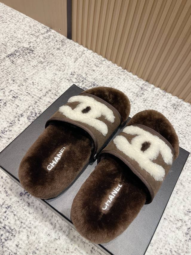 High-end version: Chanel 25C Fall/Winter New Arrival Round Toe Flat Furry Slippers A retro style with an elegant shoe shape. The large toe makes the feet appear slimmer and longer. The shoe shape is particularly stylish and sophisticated, enhancing your overall look. The upper is made of imported lamb's wool, and the inner lining is genuine wool , super comfortable . Italian imported lamb's wool, wool insole. Sizes: 35-39, 40, 41 (customizable).