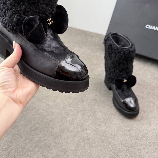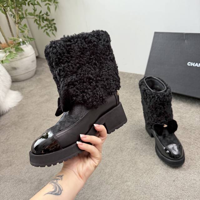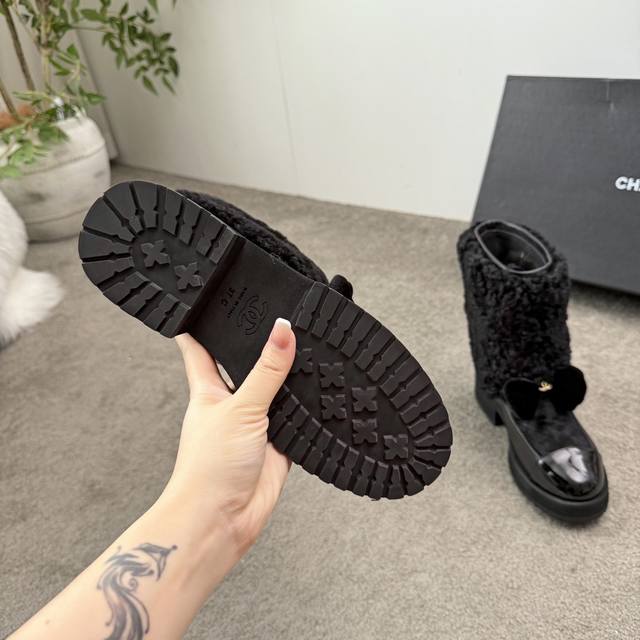 High-quality Chanel 2025 Fall/Winter latest ankle boots from boutiques, a must-have item for this season! Chanel's love for simple yet irresistible styles showcases a unique and distinctive fashion sense. Effortlessly mix and match to shine and keep up with Chanel's fashion trends! Top-tier craftsmanship and perfect texture; every detail is comparable to boutique items. The best quality, genuine boutique goods! Material: Imported sheepskin, genuine wool, and horsehair. Lining: Sheepskin. Insole: Sheepskin. Outsole: Original molded outsole. Heel height: 5cm. Boot height: 7 inches. Sizes: 35-40. Sizes 40 and 41 are custom-made and non-refundable.