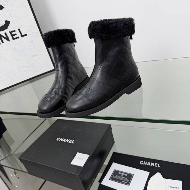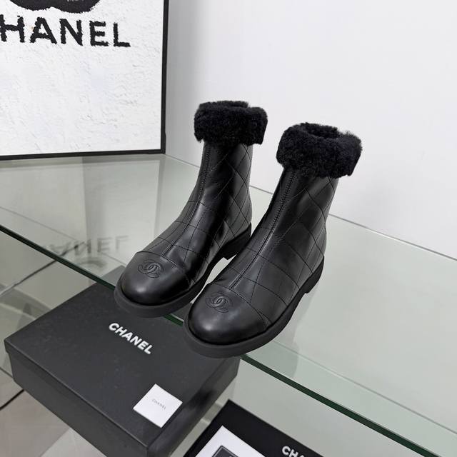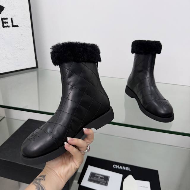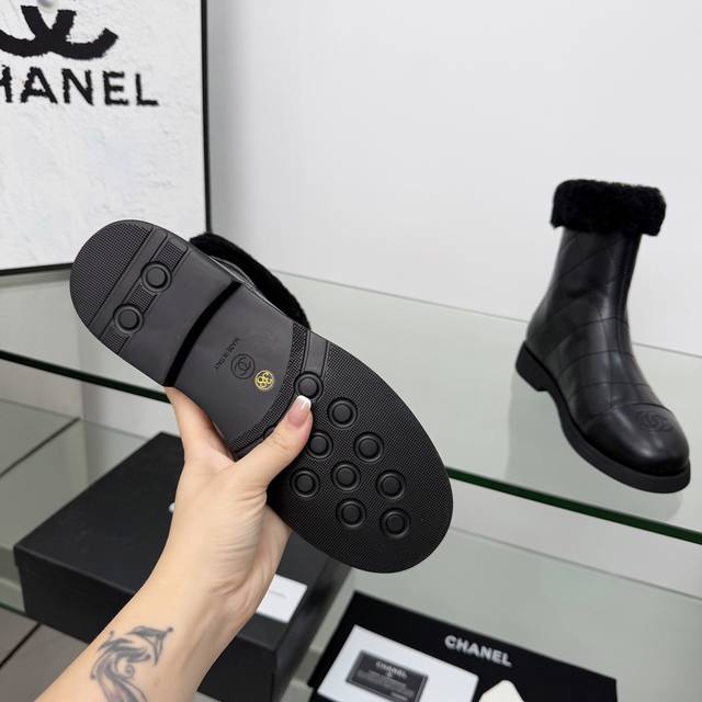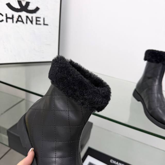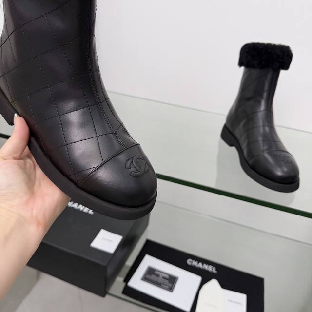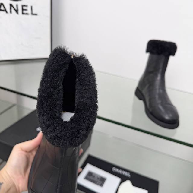 High-quality Chanel 2025 Fall/Winter latest ankle boots from the boutique, a must-have item for this fall/winter season!! Chanel's love for simple yet irresistible styling showcases a unique and distinctive style, allowing for free mixing and matching to shine and keep up with Chanel's fashion trends!! Top-notch craftsmanship and perfect texture, every detail is comparable to boutique items, the best quality, easily passable from boutiques!! Material: Imported cowhide and wool Lining: Sheepskin Insole: Sheepskin Outsole: Original molded outsole Heel height: 3.5 cm Boot height: 7 inches Sizes: 35-40, 40 and 41 are custom-made and non-refundable/non-exchangeable.