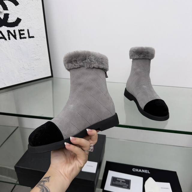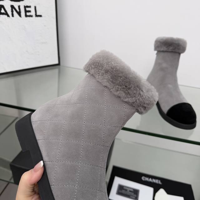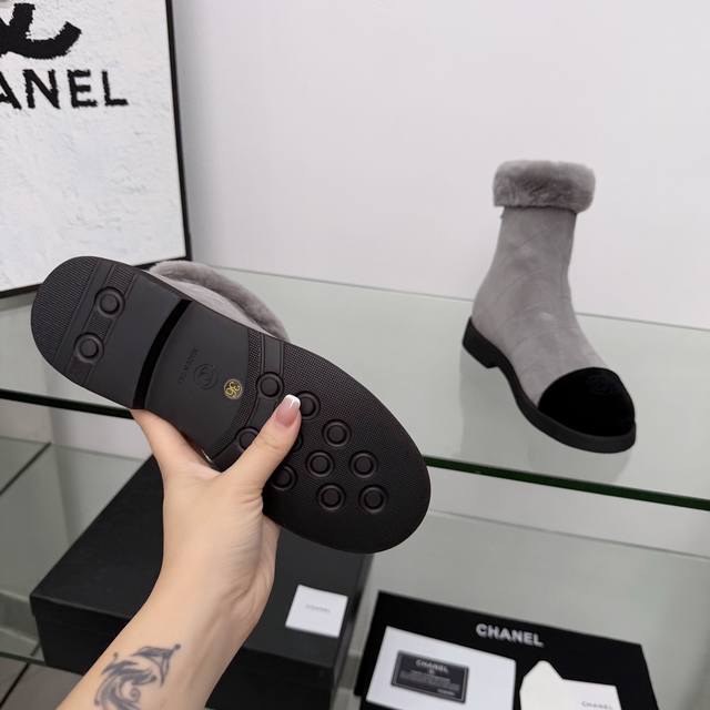 High-quality Chanel 2025 Fall/Winter latest ankle boots from the boutique, a must-have item for this fall/winter season!! Chanel's love for simple yet irresistible styling showcases a unique and distinctive style, allowing for free mixing and matching to shine and keep up with Chanel's fashion trends!! Top-tier craftsmanship and perfect texture, every detail is comparable to boutique items, the best quality, easily passable from boutiques!! Material: Imported cow suede and wool Lining: Sheepskin Insole: Sheepskin Outsole: Original molded outsole Heel height: 3.5 cm Boot height: 7 inches Sizes: 35-40, 40 and 41 are custom-made and non-refundable/non-exchangeable.