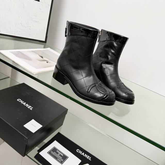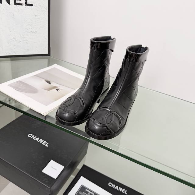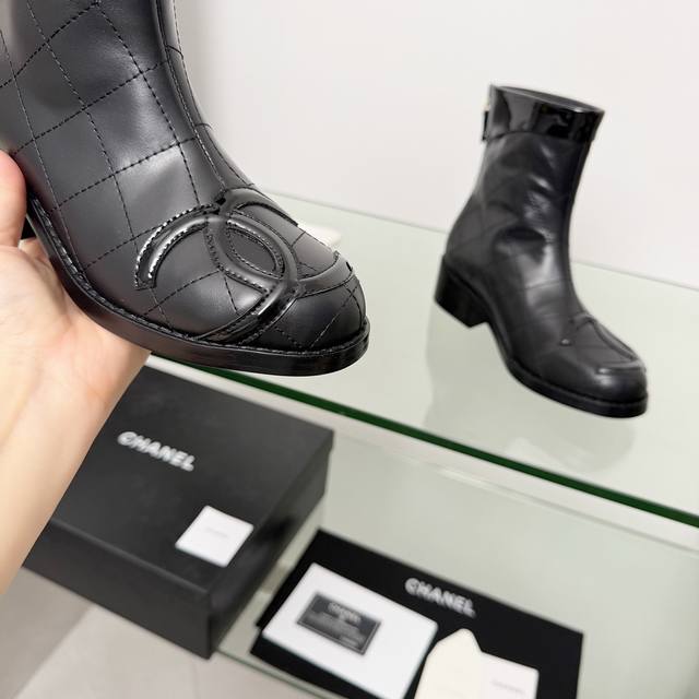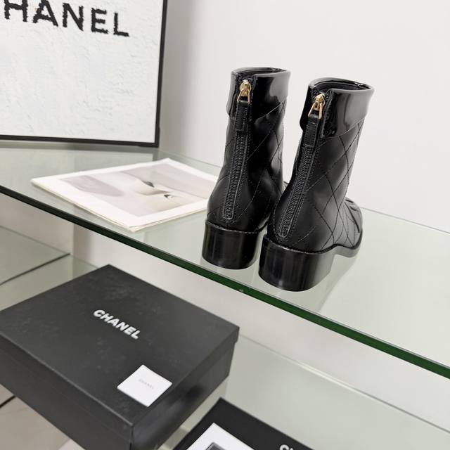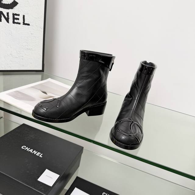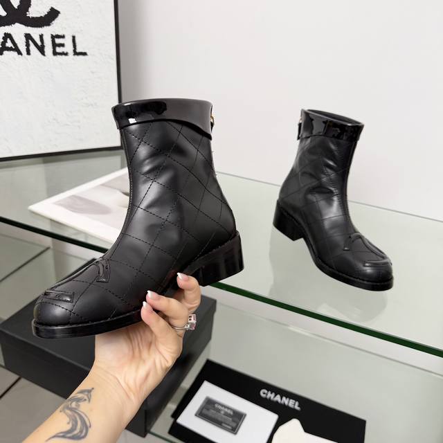 High-quality Chanel 2025 Fall/Winter latest ankle boots from the boutique, a must-have item for this fall/winter season!! Chanel's love for simple yet irresistible styling showcases a unique and distinctive style, allowing for free mix-and-match looks that shine, keeping up with Chanel's fashion trends!! Top-tier craftsmanship and perfect texture, every detail is comparable to boutique items, the best quality, easily passable from boutiques!! Material: Imported cowhide and patent leather; Lining: Sheepskin; Insole: Sheepskin; Outsole: Original genuine leather; Heel height: 4.5 cm; Boot height: 6 inches; Sizes: 35-40; Sizes 40 and 41 are custom-made and non-refundable/non-exchangeable.