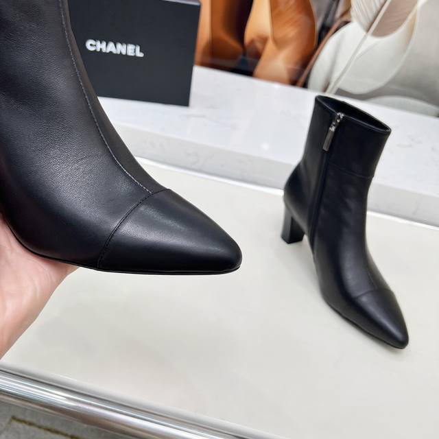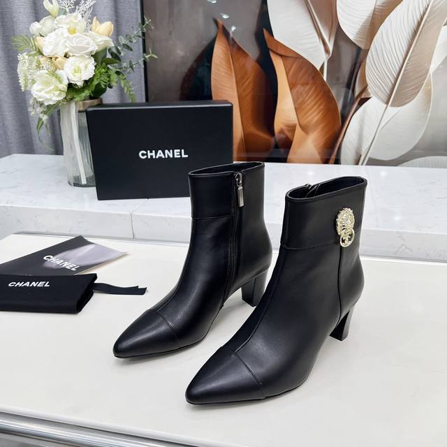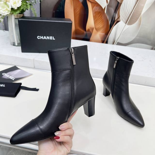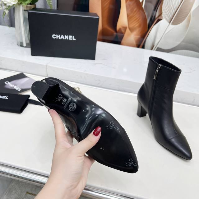 High-quality Chanel 2025 Fall/Winter latest ankle boots from the boutique, a must-have item for this season! Chanel's love for simple yet irresistible styling showcases a unique and distinctive style, allowing for free mix-and-match looks that shine, keeping up with Chanel's fashion trends! Top-tier craftsmanship and perfect texture, every detail is comparable to boutique items, the highest level of quality, easily passable for boutique use! Material: Imported cowhide and sheepskin; Lining: Sheepskin; Insole: Sheepskin; Outsole: Original Italian genuine leather; Heel height: 6 cm; Boot height: 6 inches; Sizes: 35-40; Sizes 40 and 41 are custom-made and non-refundable.