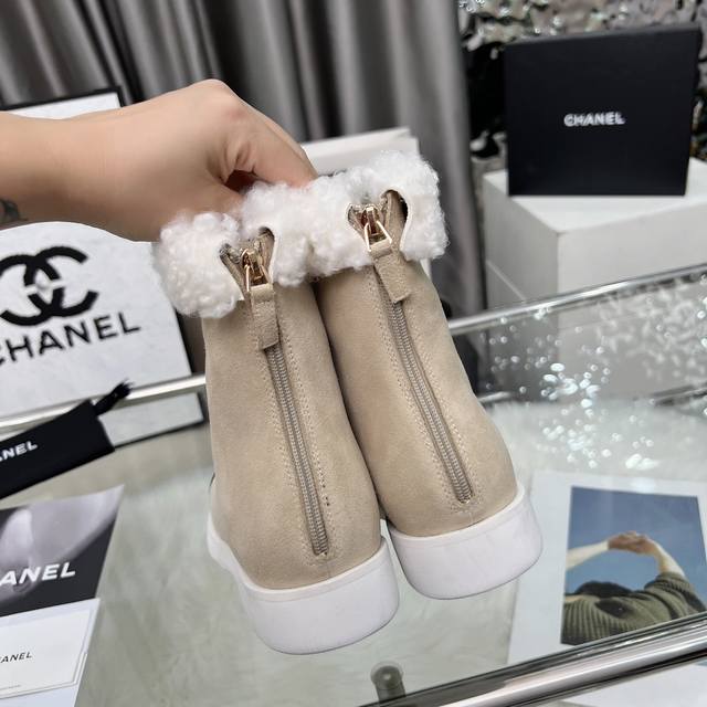 High-quality Chanel 2025 Fall/Winter latest boutique ankle boots, a must-have item for this fall/winter season!! Chanel's love for simple yet irresistible styling showcases a unique and distinctive style, allowing for free mix-and-match looks that shine, keeping up with Chanel's fashion trends!! Top-tier craftsmanship and perfect texture, every detail is comparable to boutique items, the highest level of quality, easily passable for boutique use!! Material: Imported cowhide, suede, wool; Lining: Sheepskin; Insole: Sheepskin; Outsole: Original mold sole; Heel height: 3cm; Boot height: 6 inches; Sizes: 35-40; Sizes 40 and 41 are custom-made and non-refundable/non-exchangeable.
