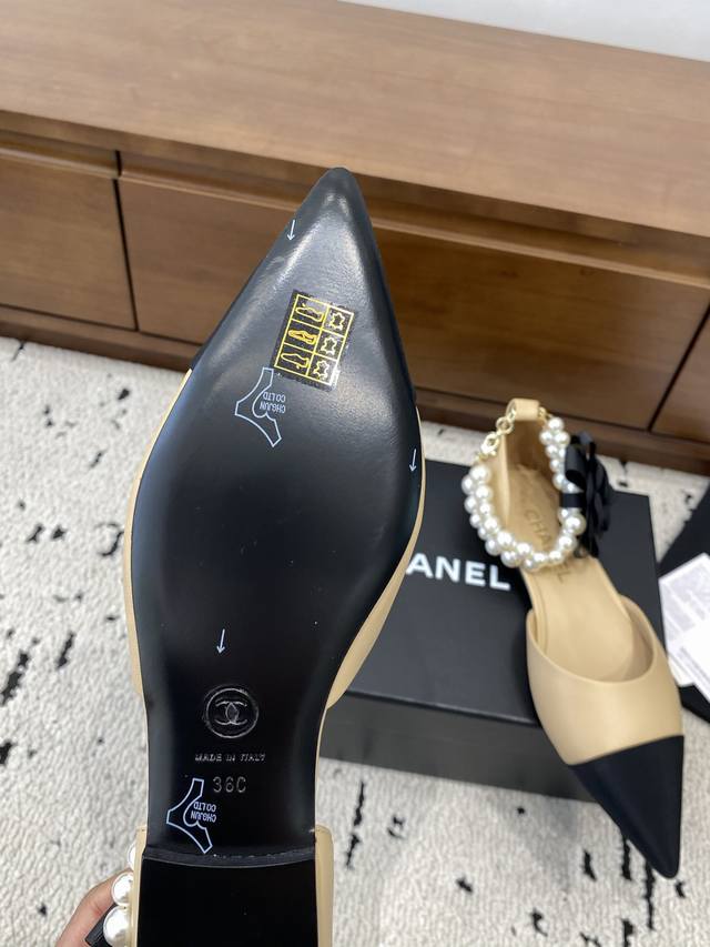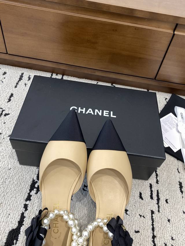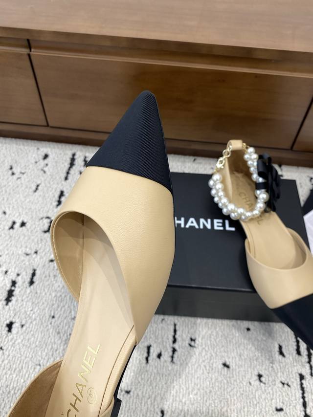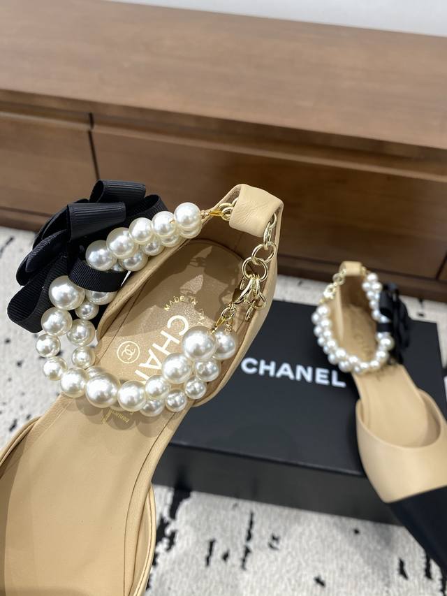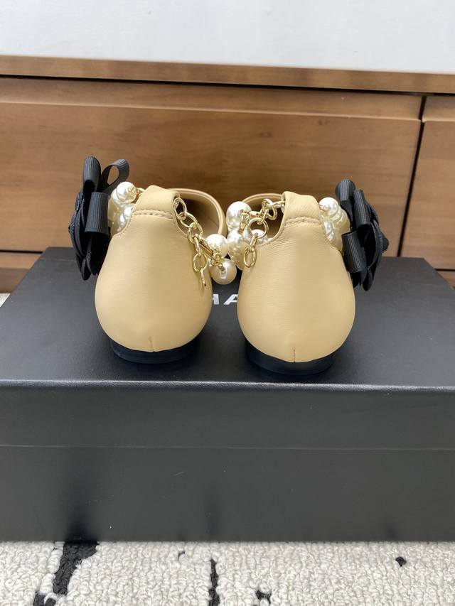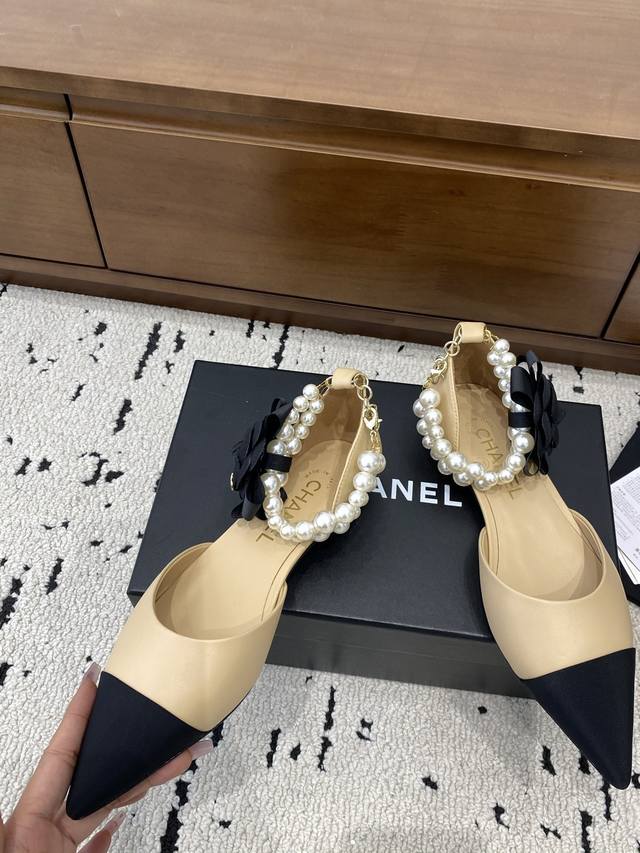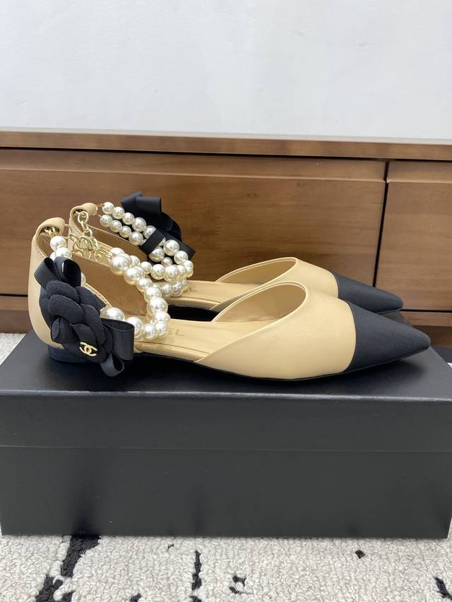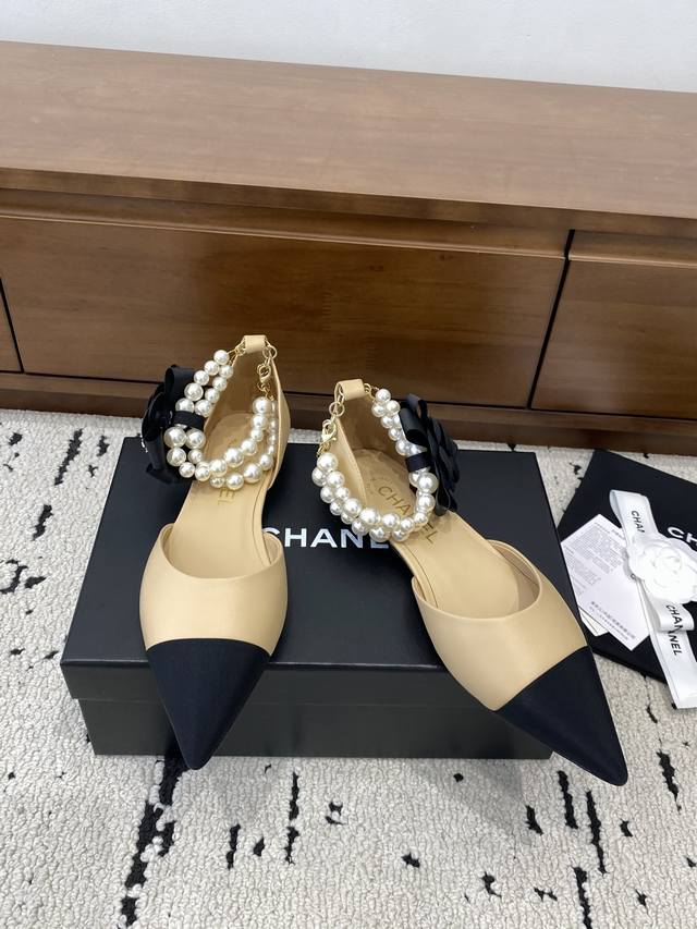 High-quality Chanel 2025 Fall/Winter new style, Mary Jane leather upper. Chanel classic flat double pearl single shoes, comfortable ballet flats. Runway high-end ready-to-wear custom design, simple yet sweet and playful, solid color fabric, refreshing and easy to match, buckle design for a better fit. Upper: Custom sheepskin. Insole: Sheepskin. Sole: Italian genuine leather. Sizes: 35-40. Size 40 is custom-made and non-refundable.