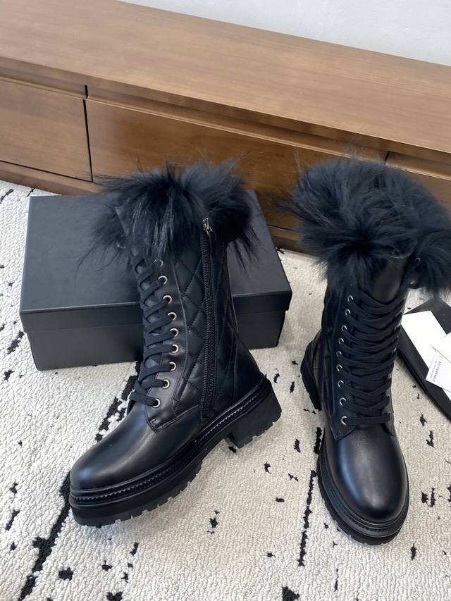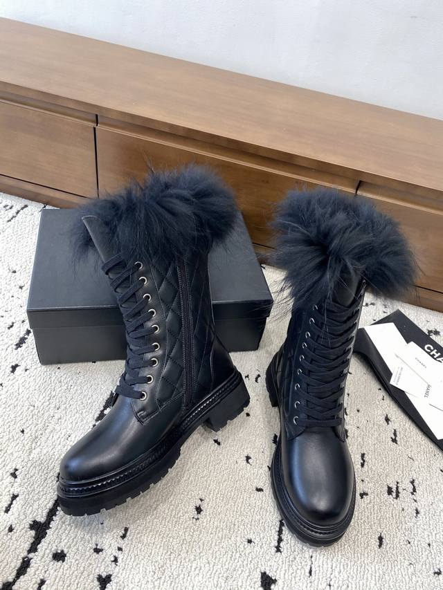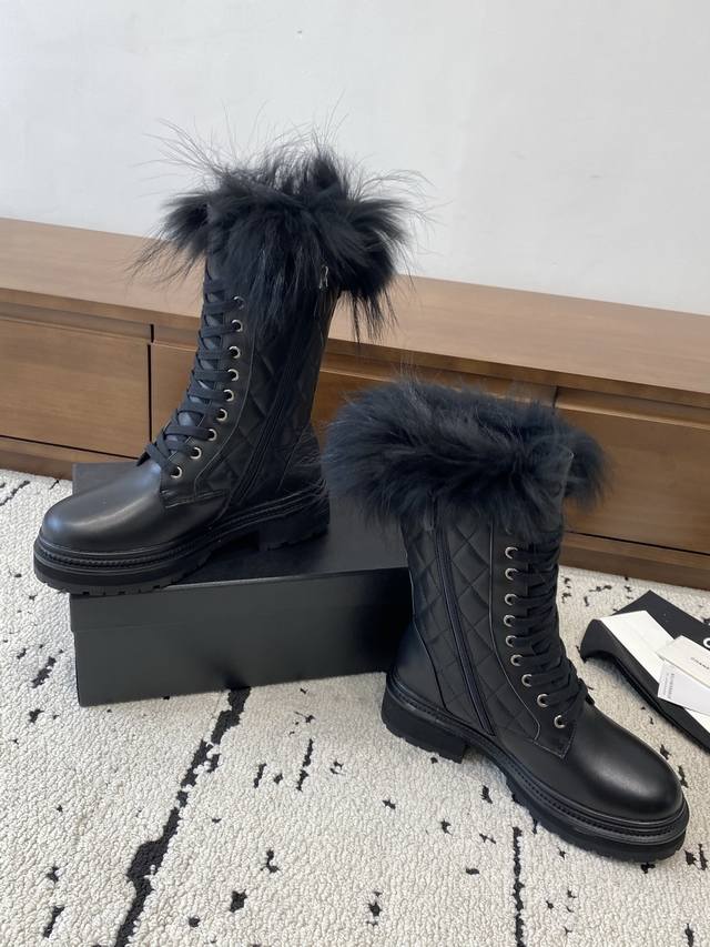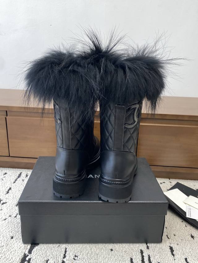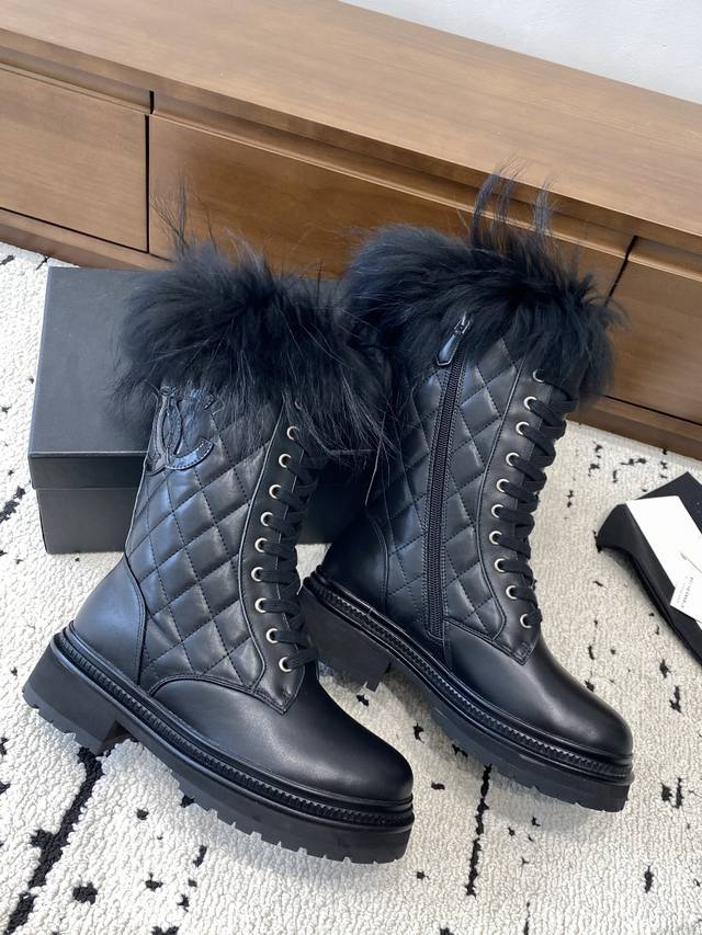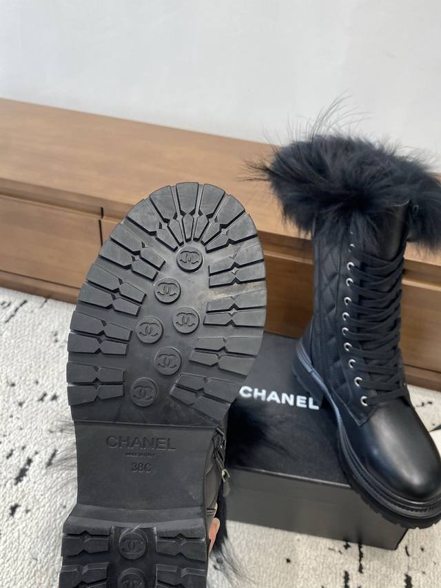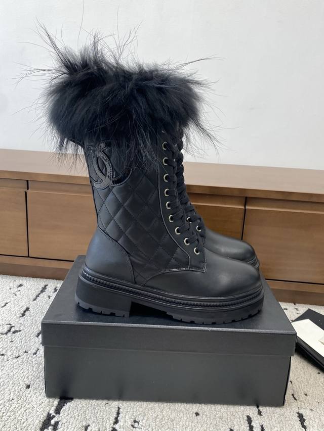 High-quality Chanel 2025 Fall/Winter platform mid-calf boots, crafted from imported cowhide, with a mink fur trim around the rim, adding 5cm in height for a super leg-lengthening effect. This is a hot item from Chanel this Fall/Winter. Made entirely of full-grain cowhide, they're incredibly comfortable. A must-have for this Fall/Winter! Upper material: Imported cowhide with mink fur. Sizes: 35-40. Size 40 is custom-made, no returns or exchanges. Buy now! ...