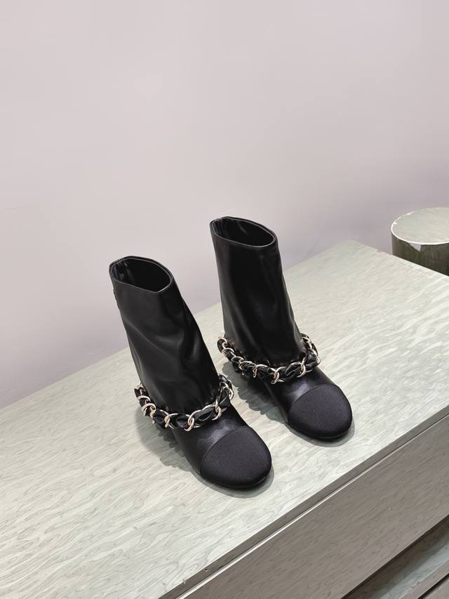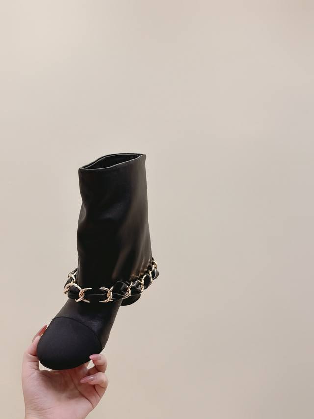 Chanel 25Ss New Autumn/Winter High-Heeled Chain Elastic Ankle Boots, Versatile a