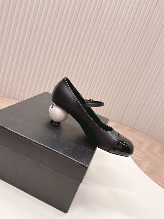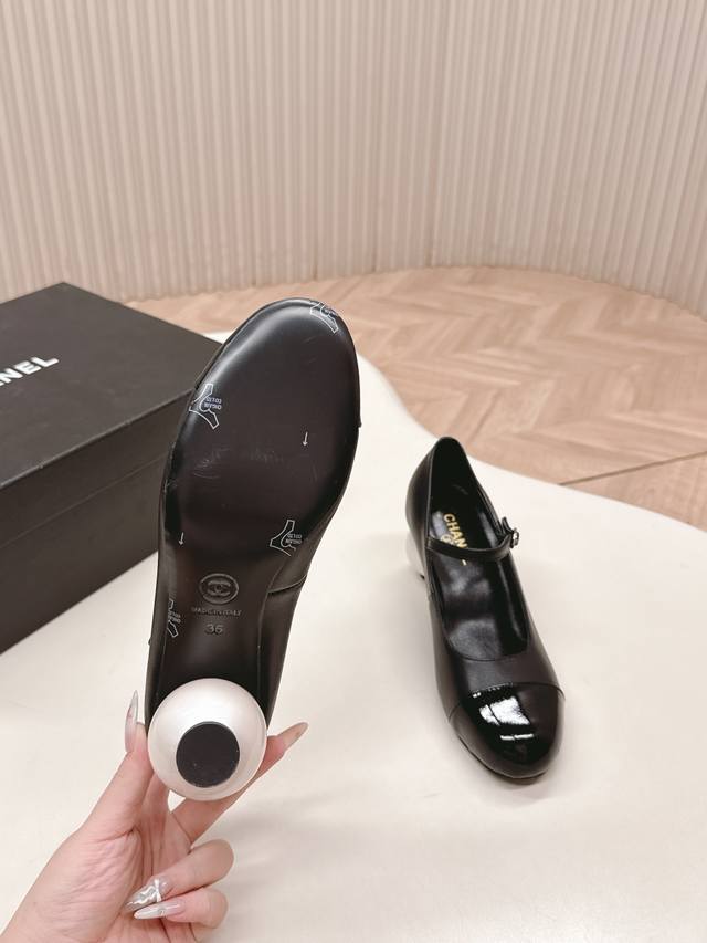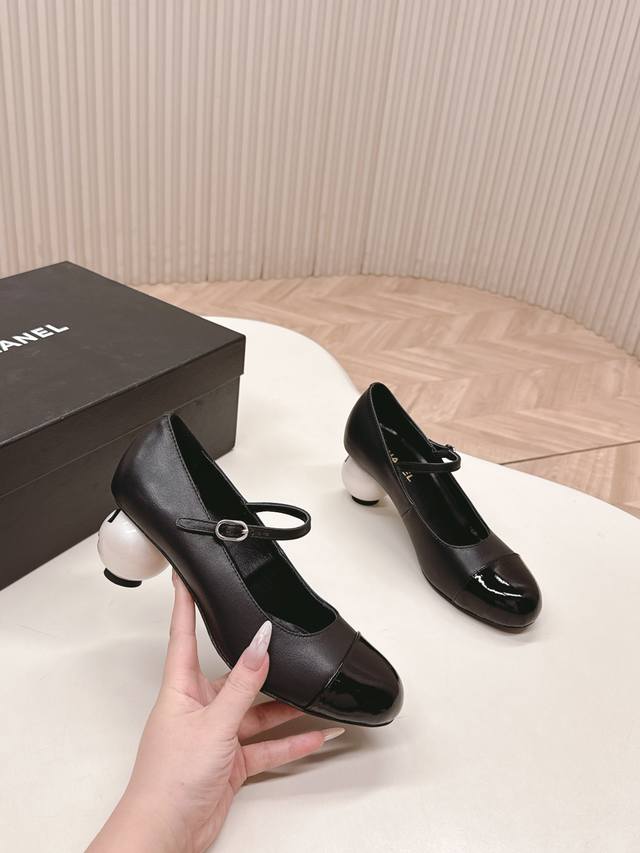 High-quality Chanel 25K new style large pearl heel high-heeled single shoes. Versatile last for slim feet. Three-dimensional and full shape, comfortable to wear, very trendy and stylish. Original giant pearl heel design, classic style, perfect details, cool and trendy. Upper: Imported sheepskin. Lining: Sheepskin. Size: 35-40.