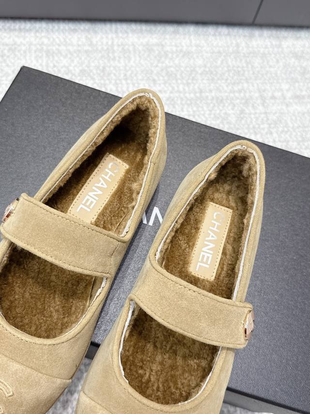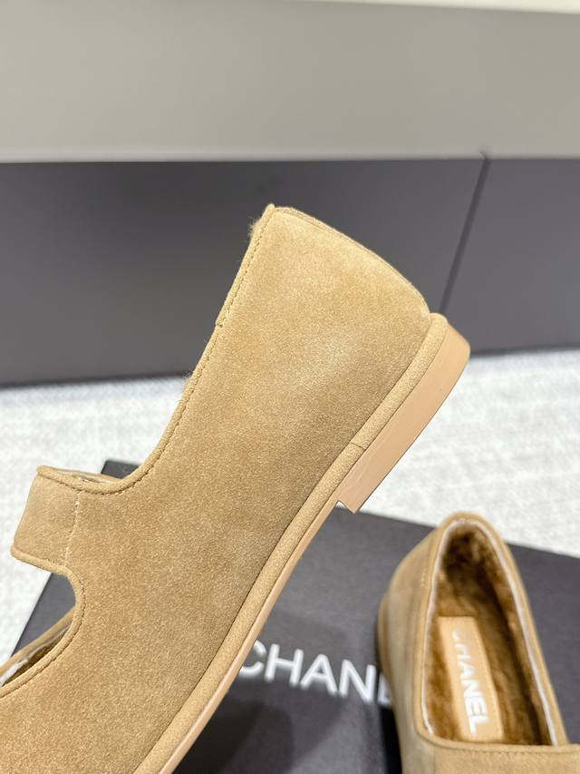 High-quality Chanel 25Ss Fall/Winter Teddy Sheepskin Mary Jane Flat Ballet Flats! So soft and fluffy, you'll fall in love at first sight! Sheepskin! It's incredibly soft and fluffy sheepskin! The entire upper is covered in super fine and fluffy sheepskin material; touching it feels like petting a puppy, the feel is amazing! Wearing these in early autumn, your feet will feel warm first, instantly saying goodbye to the chill~ The fluffy texture has a gentle filter, making you look like a rich heiress, elegant yet youthful! Upper: Imported sheepskin suede Insole: Imported sheepskin and sheepskin Outsole: Imported Italian thickened genuine leather Outsole Sizes: 35-40 Orders under size 40 are non-refundable and non-exchangeable.