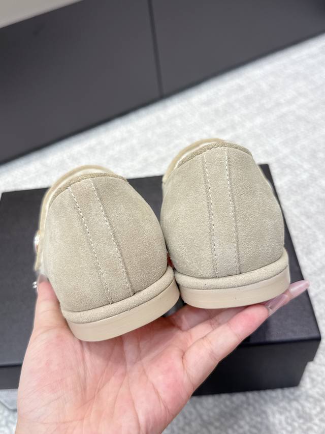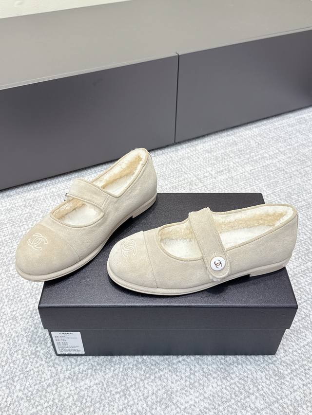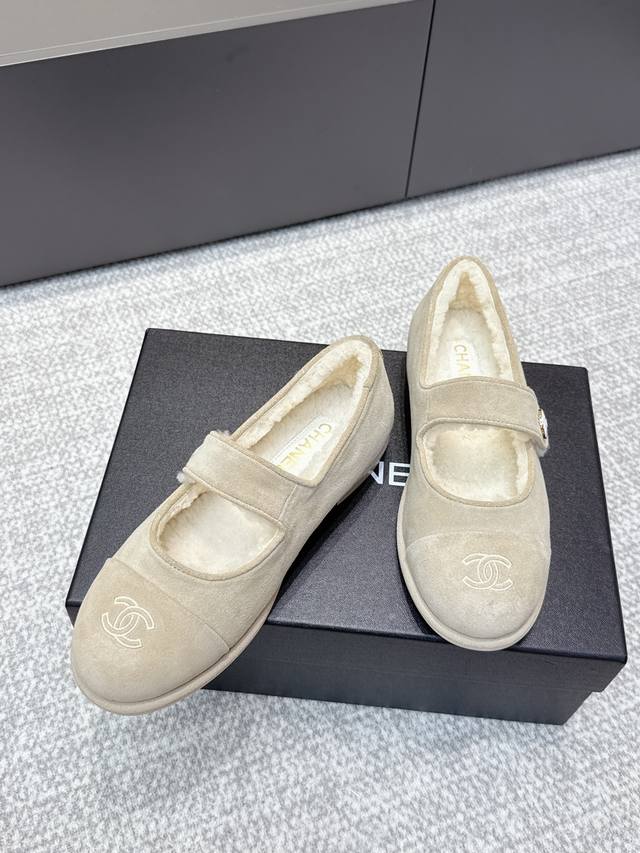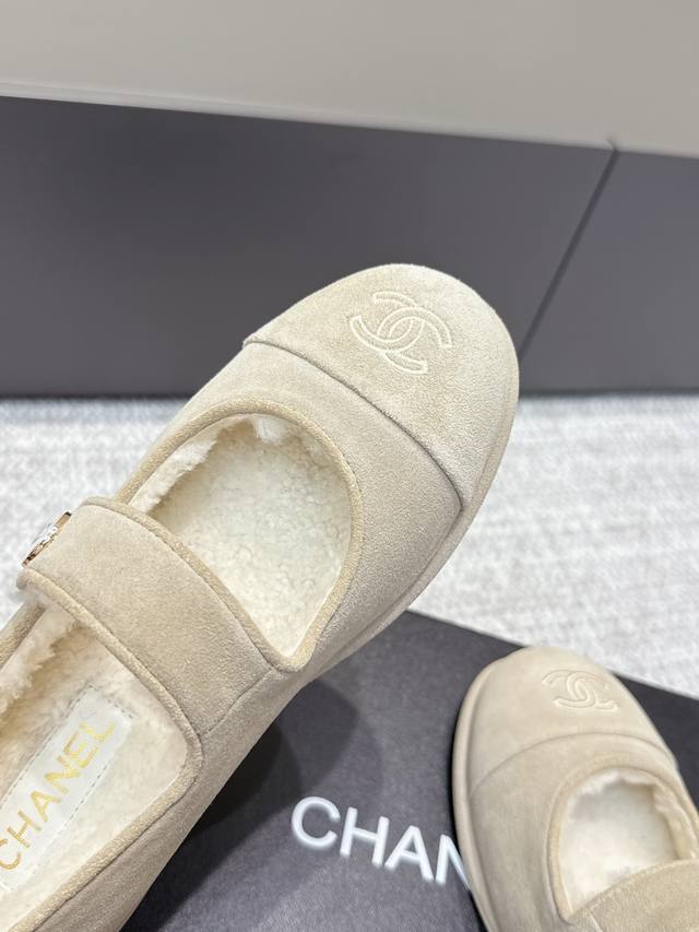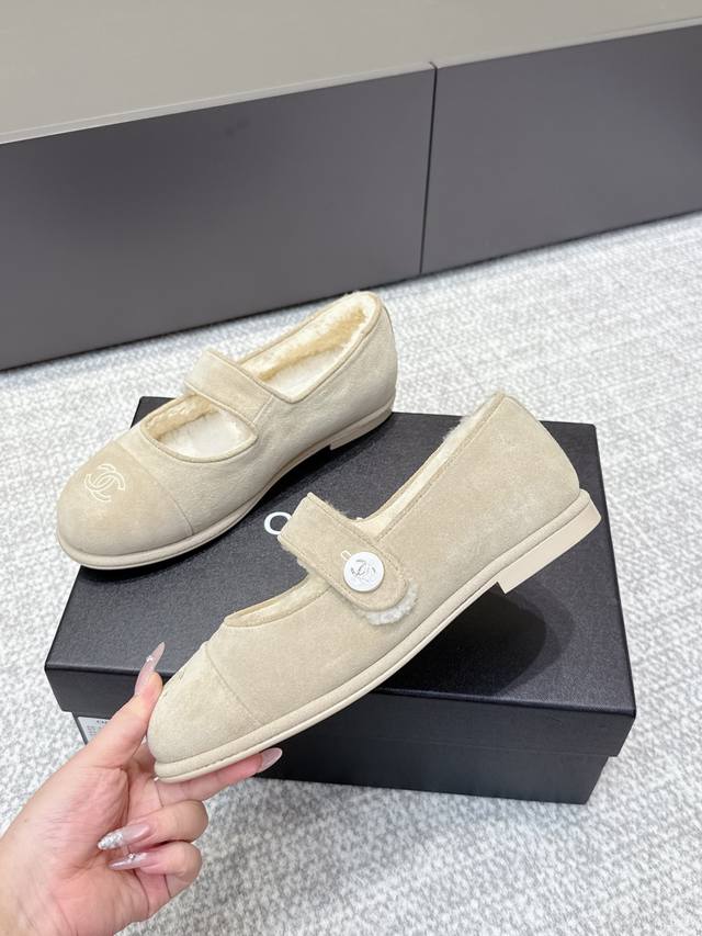 High-quality Chanel 25Ss Fall/Winter Teddy Sheepskin Mary Jane Flat Ballet Flats! So soft and fluffy, you'll fall in love at first sight! Sheepskin! It's incredibly soft and fluffy sheepskin! The entire upper is covered in super fine and fluffy sheepskin material; touching it feels like petting a puppy, the feel is amazing! Wearing these in early autumn, your feet will feel warm first, instantly saying goodbye to the chill~ The fluffy texture has a gentle filter, making you look like a rich heiress, elegant yet youthful! Upper: Imported sheepskin suede Insole: Imported sheepskin lining Outsole: Imported thickened genuine leather outsole Sizes: 35-40 Orders under size 40 are non-refundable and non-exchangeable.