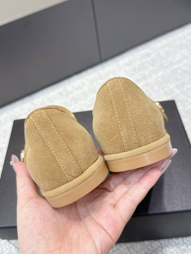 High-quality Chanel 25Ss Fall/Winter Teddy Sheepskin Mary Jane Flat Ballet Flats! So soft and fluffy, you'll fall in love at first sight! Sheepskin! It's incredibly soft and fluffy sheepskin! The entire upper is covered in super fine and fluffy sheepskin material; touching it feels like petting a puppy, the feel is amazing! Wearing these in early autumn, your feet will feel warm first, instantly saying goodbye to the chill~ The fluffy texture has a gentle filter, making you look like a rich heiress, elegant yet youthful! Upper: Imported sheepskin lining Insole: Imported sheepskin outsole: Imported thickened genuine leather outsole Sizes: 35-40 Size 40: No returns or exchanges.