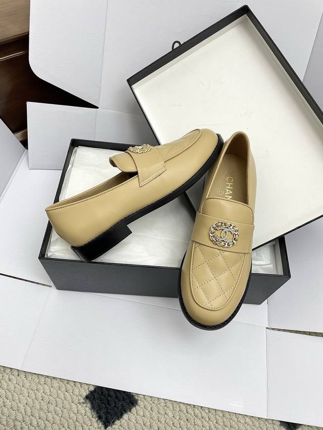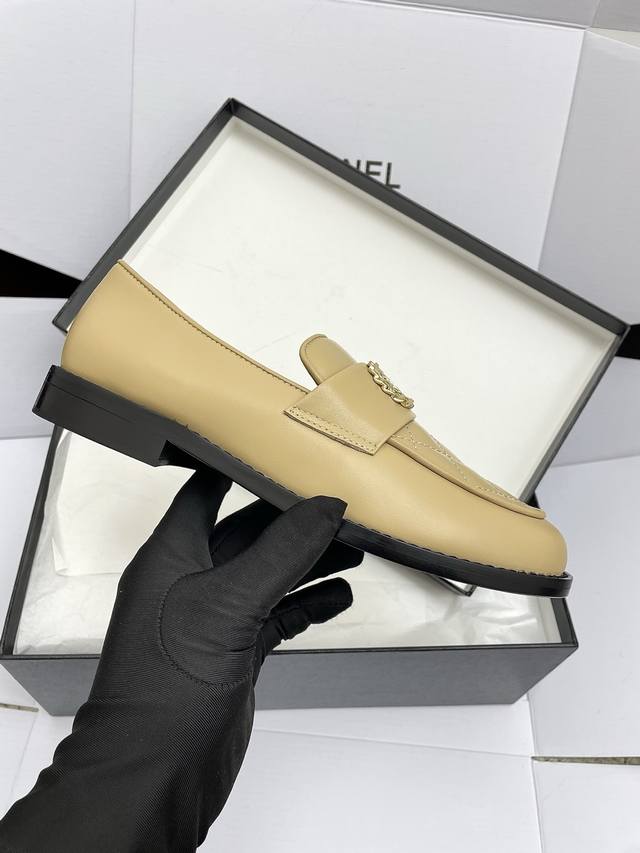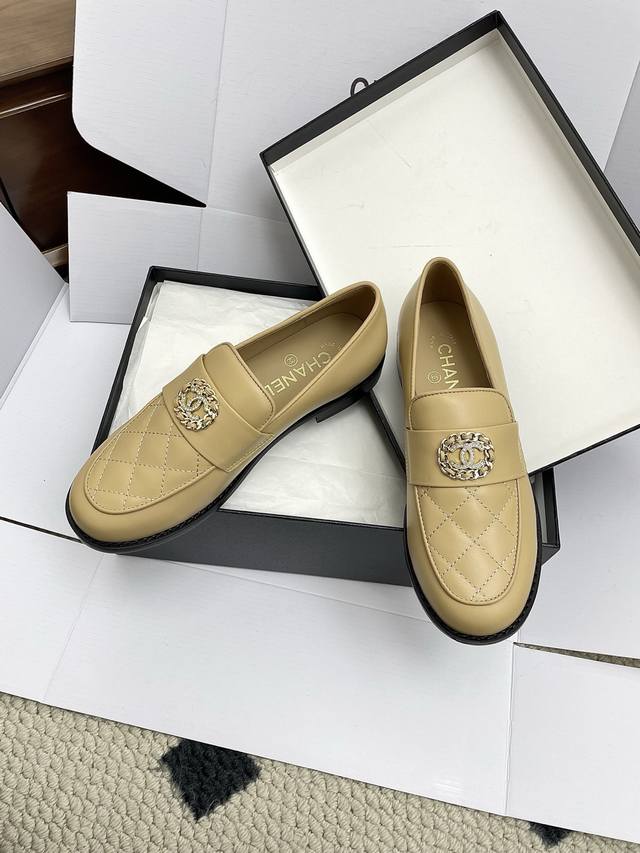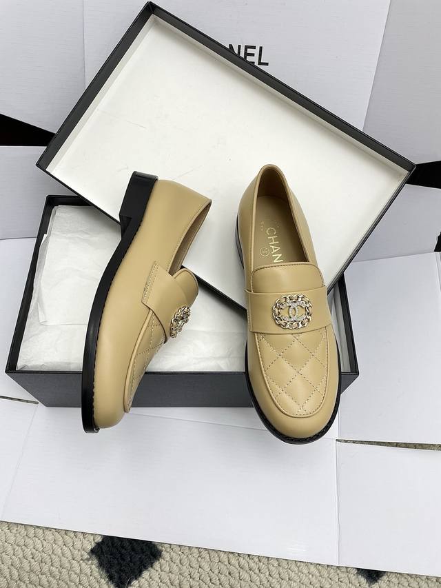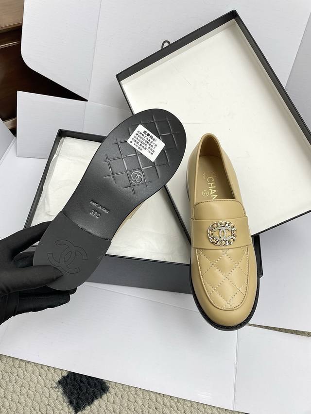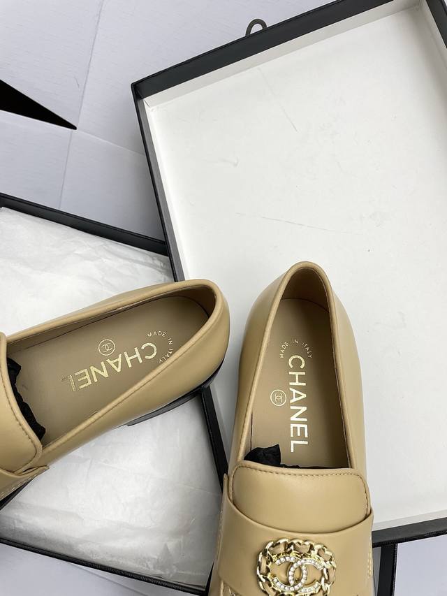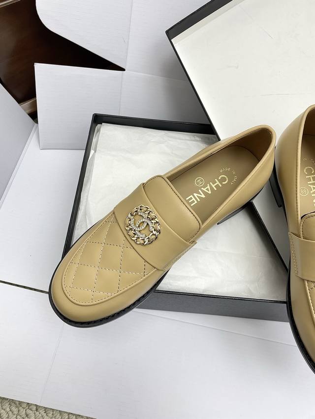 High-quality Chanel 25Ss loafers in a premium box. A goddess-themed pair, these loafers exude Chanel's signature elegant and sophisticated style. Super stylish and irresistible. Upper: Imported calfskin; Lining: Mixed sheepskin; Outsole: Italian genuine leather. Sizes: #35-41 (40, 41). Custom orders are non-refundable and non-exchangeable.