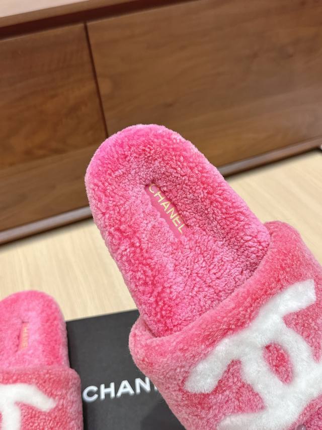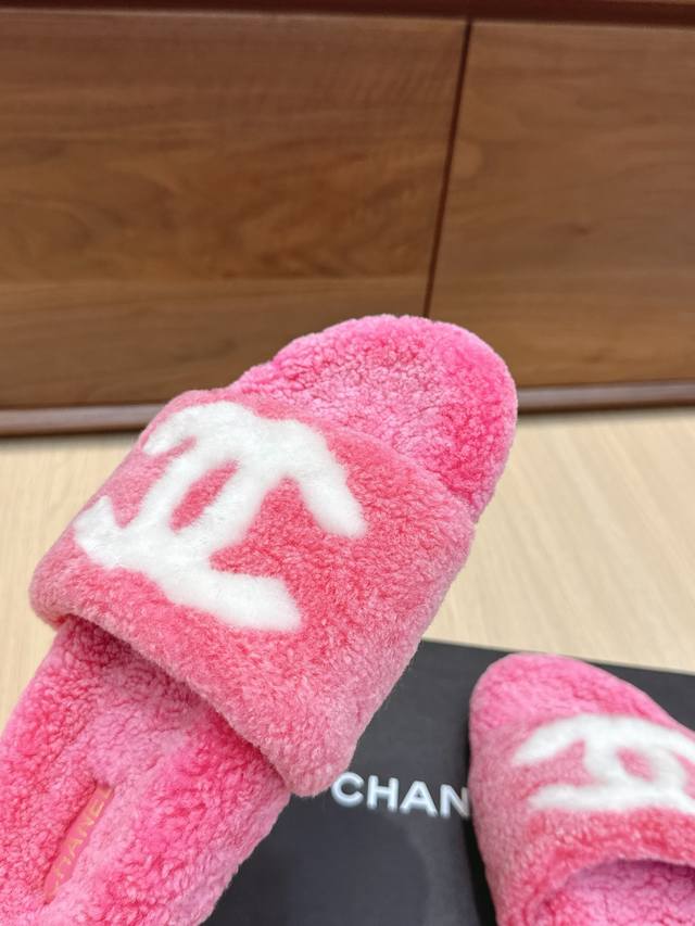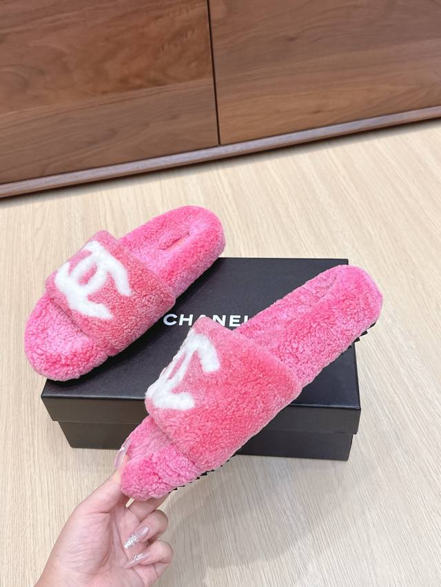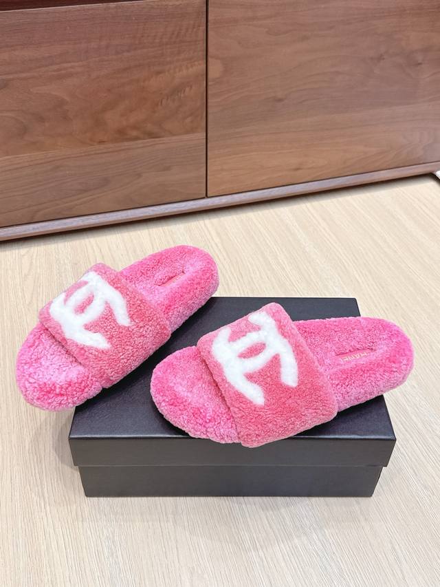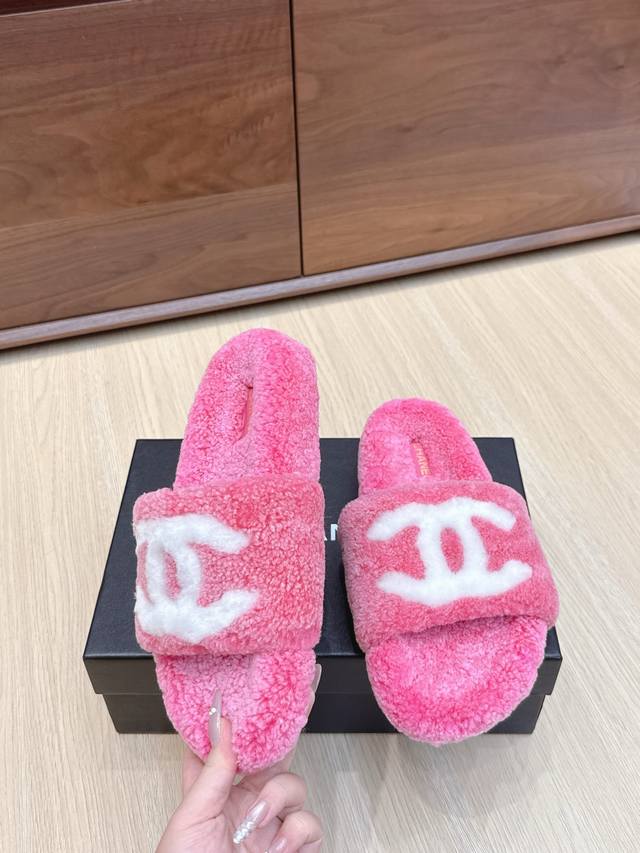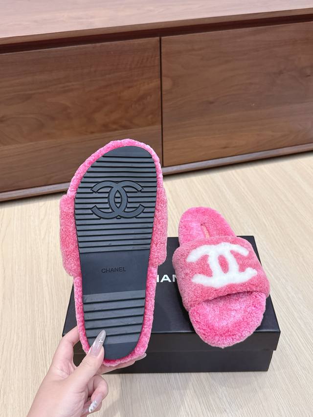 High-quality Chanel classic all-season double C fur slippers (retailer quality)! These fur slippers are absolutely adorable! The soft, fluffy fur is comfortable and warm. Perfect for autumn and winter; pair them with socks for a casual and relaxed look. They look great and stylish on! Made with imported wool, the fabric is delicate, soft, and silky. Eva foam outsole. Sizes: #35-39, 40, 41 (custom sizes available).