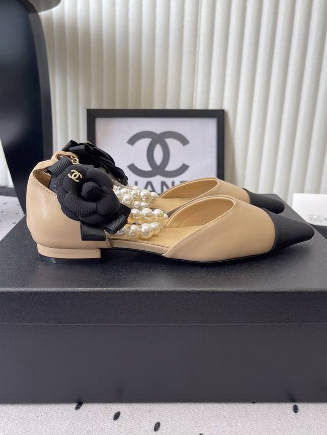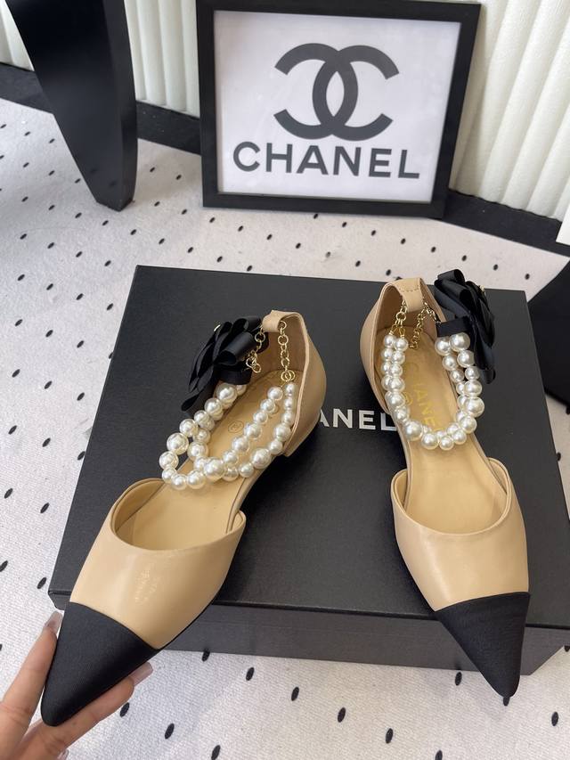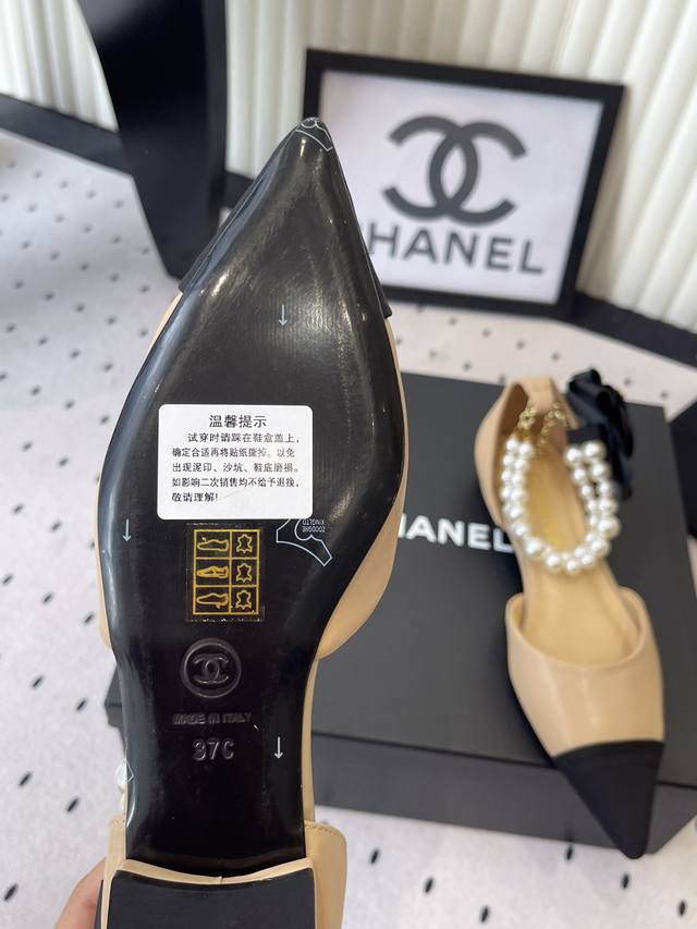 High-quality Chanel pearl sandals, perfectly blending classic elegance with modern fashion. Luxurious details and feminine grace with every step. Imported sheepskin upper, sheepskin lining, insole, Italian genuine leather outsole. Sizes: 35-39, 40-41. Custom orders accepted.