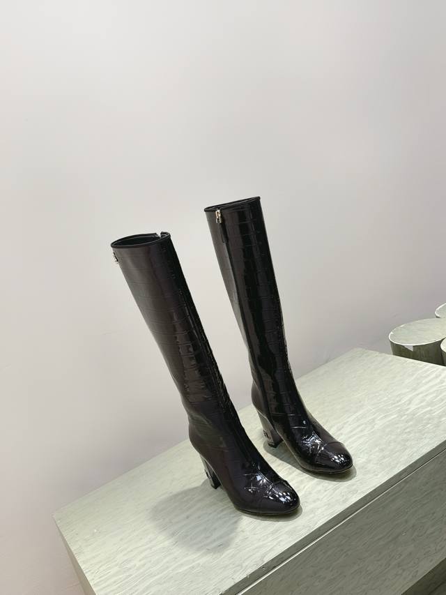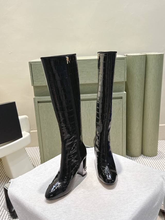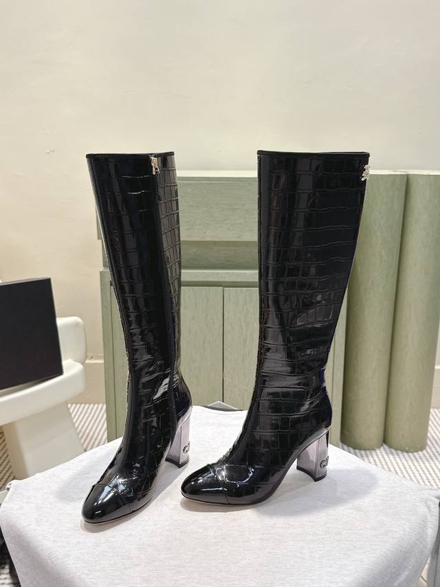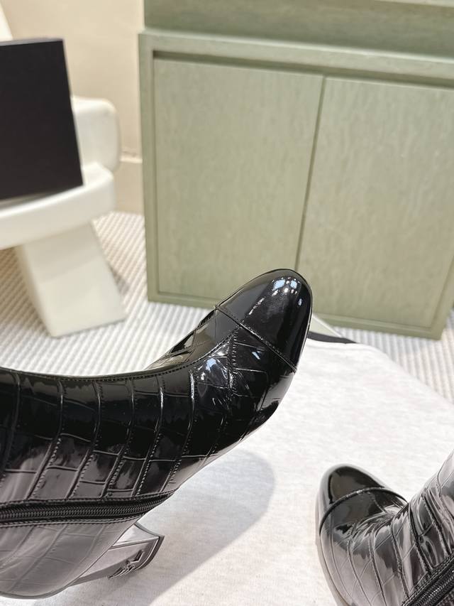High-quality Chanel two-tone high-heeled ankle boots, featuring off-white patent leather and black accents, with a diamond quilting pattern and pearl embellishments, exuding elegance and sophistication. The chunky heel design is comfortable and elongates the legs, a perfect addition to any autumn/winter outfit. Easily paired with cigarette pants or skirts, suitable for both work and formal occasions. A classic Chanel style, practical and fashionable, a versatile must-have in any shoe collection, looking good with everything! Upper: Original stone-patterned calfskin Lining: Sheepskin Heel Height: 8.5cm Outsole: Original cowhide sole Size: 35-39 (34, 40, 41, 42 are custom-made and non-refundable)
