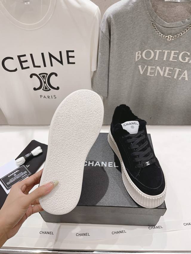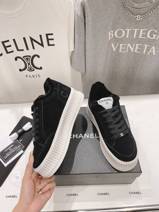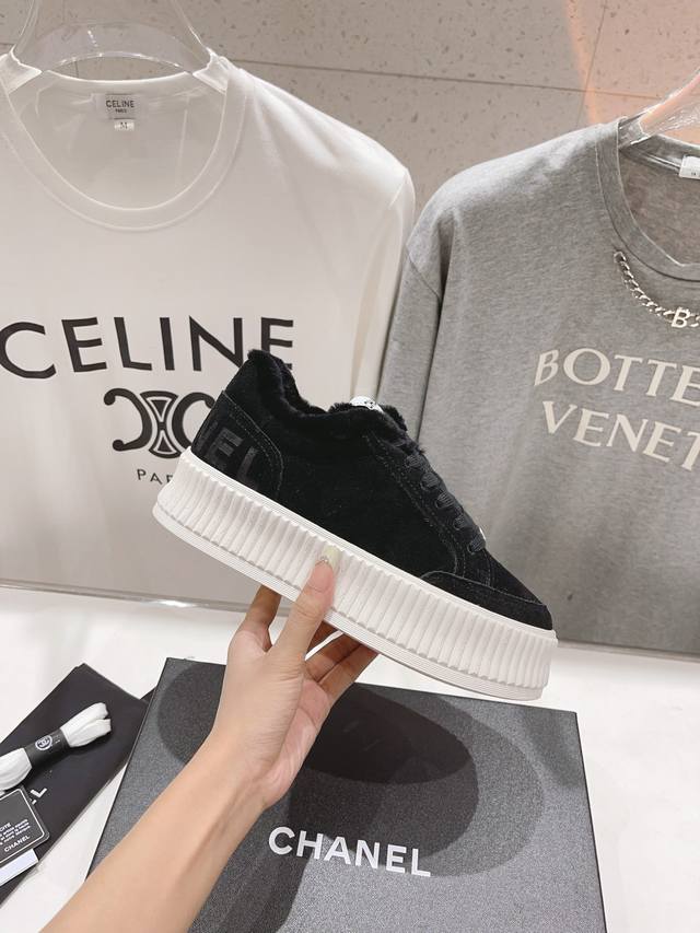 High-quality factory direct DDD Chanel 2025Ss Panda color-blocked platform biscuit shoes with wool lining Casual shoes DDD Celebrity and influencer style, latest runway main series new arrival DDD Upper: Imported cowhide, 1:1 original letter arrangement DDD Lining: Genuine wool lining and insole DDD Outsole: Original private mold outsole DDD Sizes: 35-40, 40, 41 custom-made DDD Original full set of deluxe packaging DDD