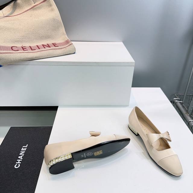 High-quality factory release! Top-quality Chanel Spring/Summer 2026 new arrival, small Chanel bow pearl heel round toe Mary Jane flats! Flat ballet flats! DDD The simple and elegant appearance makes them easy to match with various outfits on the city streets, showcasing your unique taste. Elegant temperament, perfectly interpreted, becoming an indispensable member of your shoe cabinet! DDD The upper is made of mixed sheepskin patent leather and silk satin DDD The inner lining is sheepskin DDD The Italian imported original color genuine leather outsole DDD Sizes: 35-41 40.41 Custom orders are non-refundable DDD Comes with original packaging DDD