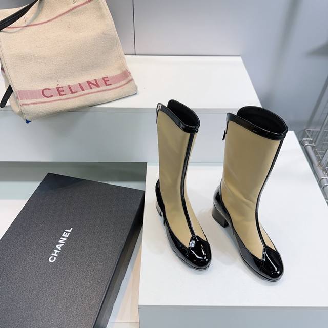 High-quality factory! Top-quality Chanel Fall/Winter 2025 suede color-blocked chunky heel round toe back zipper riding boots! Retro-style boots, Western cowboy short boots! When Chanel elegance meets Western style, these boots are the best interpretation. The toughness of leather and the softness of suede intertwine to outline a unique silhouette, a collision of classic elements! The unique Western boot shaft design features smooth curves and irregular edges like free lines in the wilderness! It carries a casual and unrestrained feel. Let every step exude both freedom and sophistication! Whether paired with tailored suit trousers for a cool urban look, or with a flowing dress for a harmonious blend of strength and softness, or even with jeans for an authentic Western vibe! The upper is made of top-grain cowhide combined with sheepskin suede. The insole is made of water-dyed cowhide. The outsole is made of thickened genuine Italian leather. Heel height: 4.5cm. Sizes: 35-41. Sizes 40 and 41 are custom-made and non-refundable. Comes with original packaging.