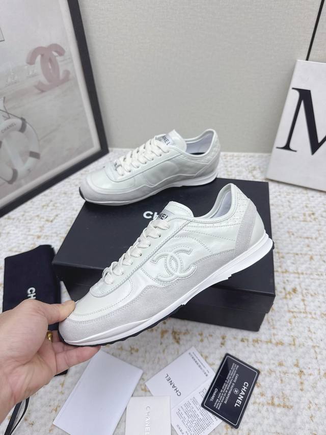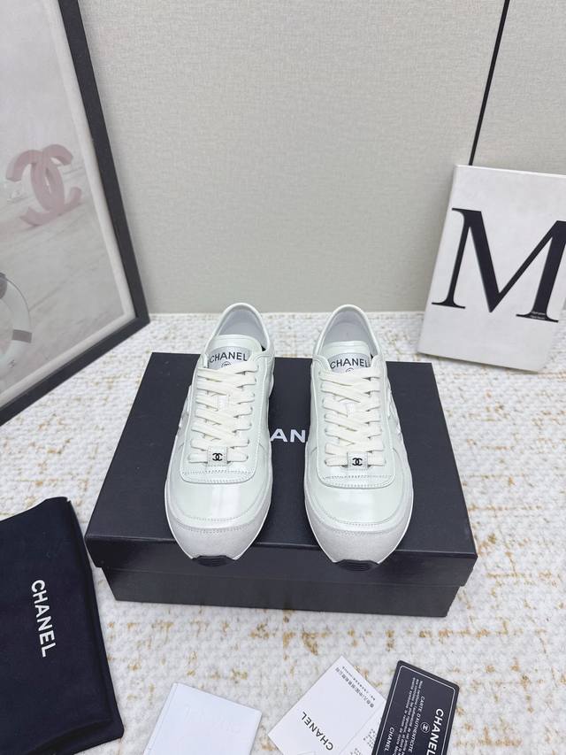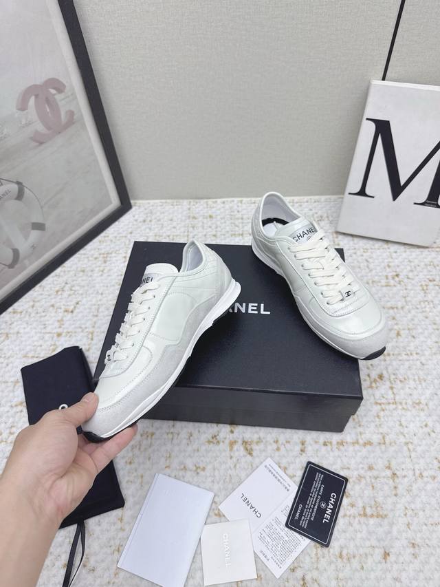High-quality factory-made Chanel 25 new panda sneakers/casual shoes. These are extremely popular and hard to find, the hottest platform panda shoes online. A must-have for Chanel lovers! These stylish and comfortable white sneakers are incredibly versatile and easy to match with anything. A no-brainer purchase; everyone looks good in them. Upper: Imported calfskin, imported suede. Lining: Imported sheepskin. Outsole: Original TPU outsole. Size: #35-41. Sizes 40 and 41 are custom-made and non-refundable.