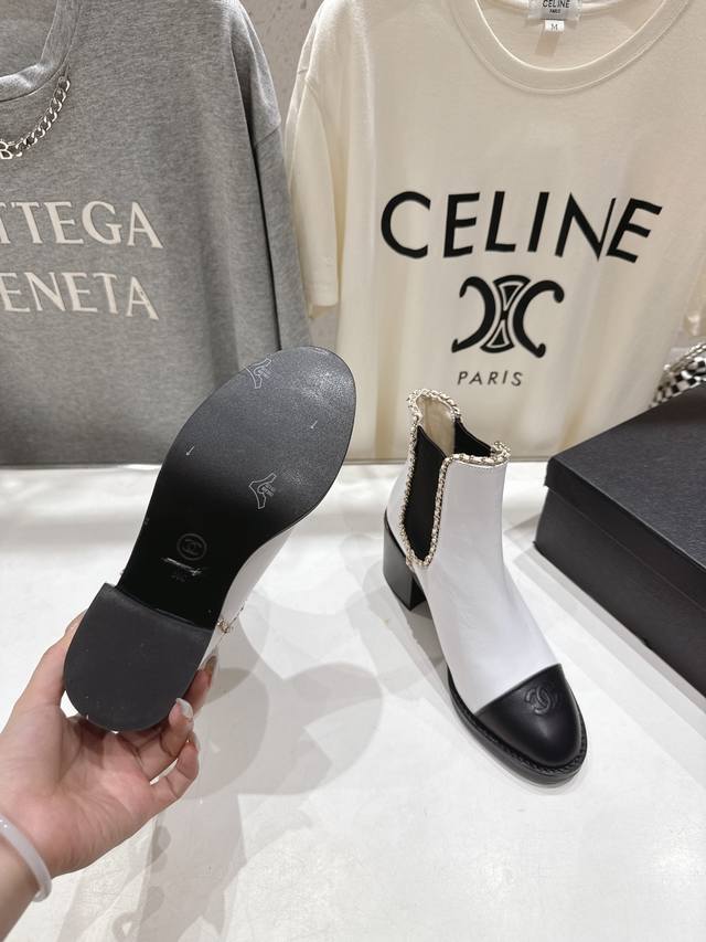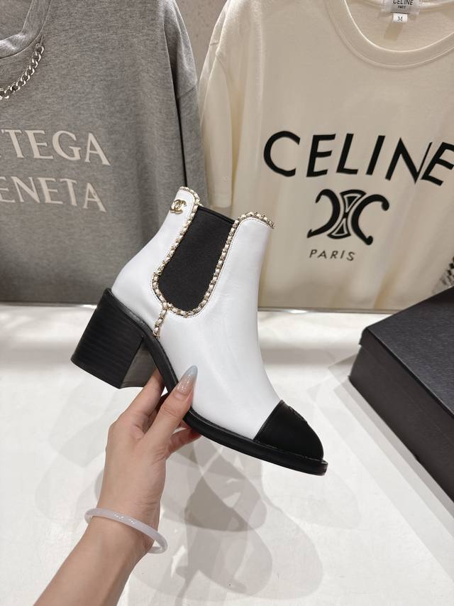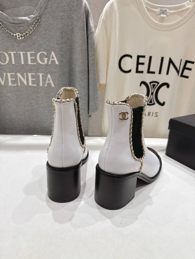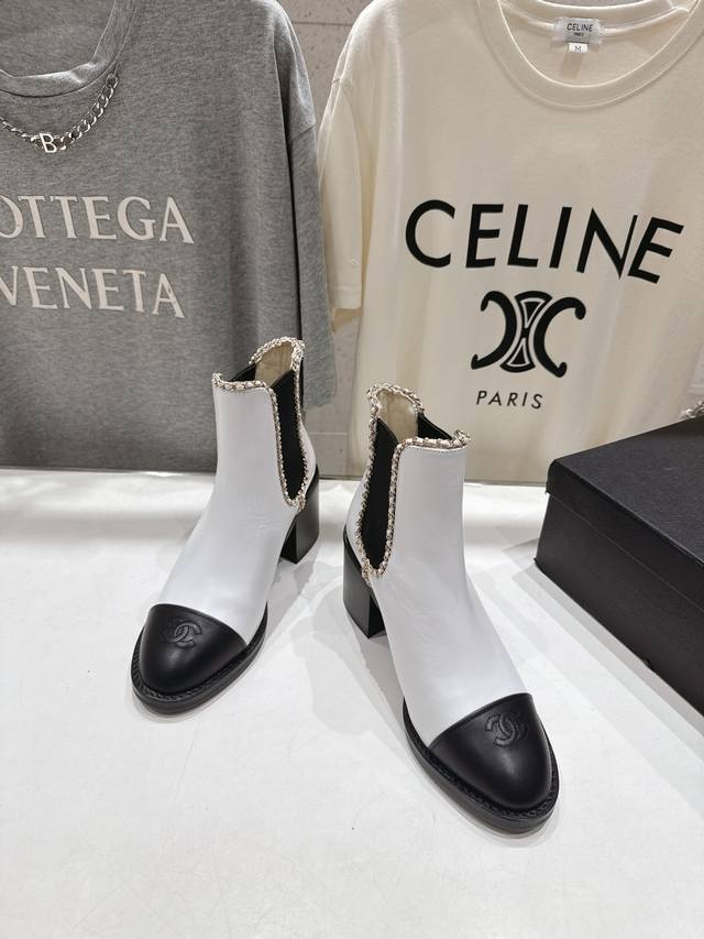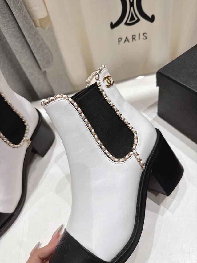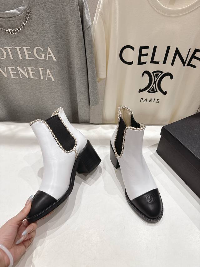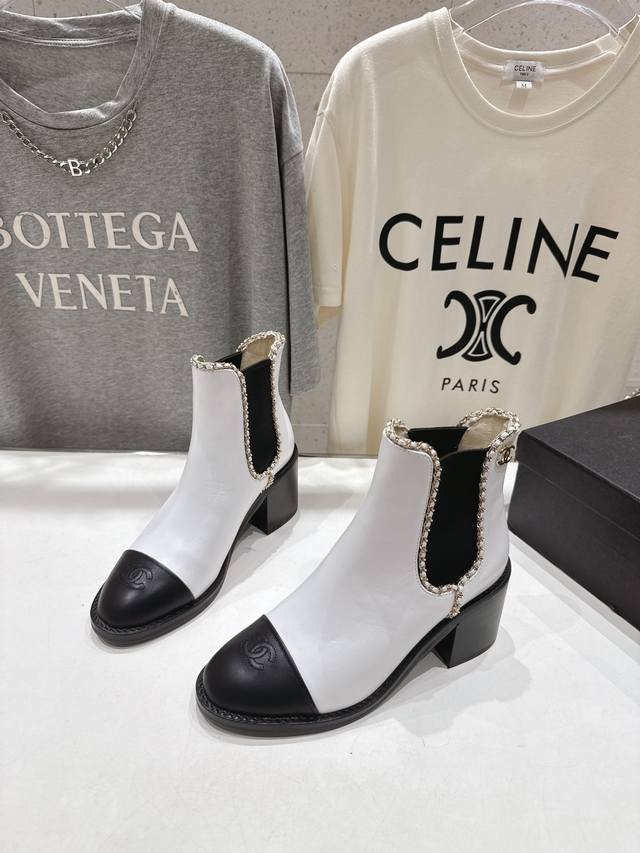 High-quality factory-made Chanel F015 2025 Autumn/Winter Chelsea high-heeled ankle boots/shawl boots. A pair of boots you won't want to throw away even after many years. Very elegant original last, super fashionable and versatile, classic elastic side design for easy on and off! Upper: Imported calfskin; Lining: Sheepskin; Insole: Sheepskin; Heel height: 6cm; Outsole: Italian imported genuine leather; Sizes: 35-39; 40 custom-made.