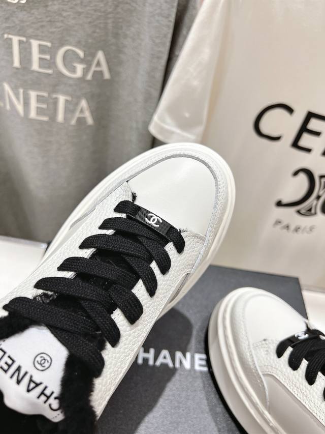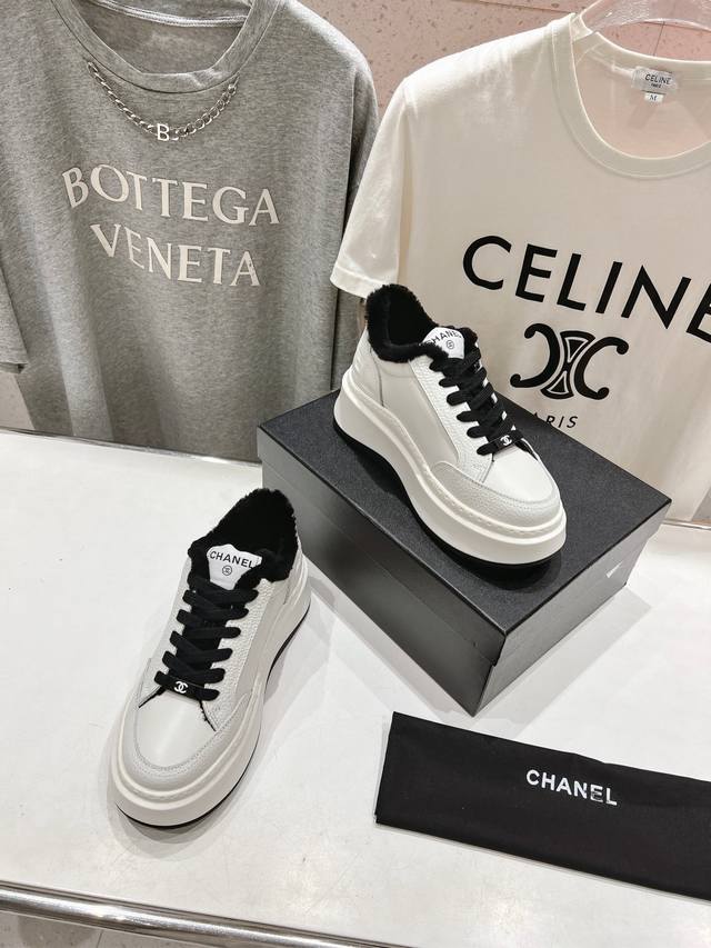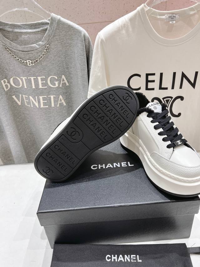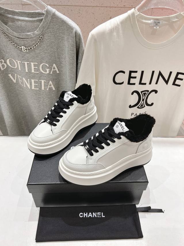 High-quality factory-made wool-lined Chanel* 2025Ss winter latest thick-soled, fur-lined biscuit shoes, panda shoes, casual shoes. Popular on social media and celebrities, especially on Xiaohongshu. Adorably cute with a touch of retro style! Unique design, highly recognizable, slimming and leg-lengthening, definitely a top performer, very comfortable to wear, high-value and comfortable, and height-enhancing