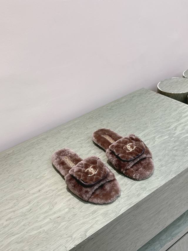 High-quality import | D1172 Chanel Classic All-Season Double C Furry Slippers! These furry slippers are absolutely adorable! The soft, fluffy fur is comfortable and warm. Perfect for autumn and winter, they look effortlessly stylish with socks. Made with imported wool, the fabric is delicate, soft, and silky. Features an EVA foam sole. Sizes: #35-39, 40, 41 (Custom sizes available).