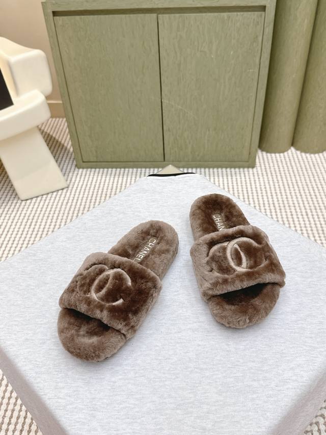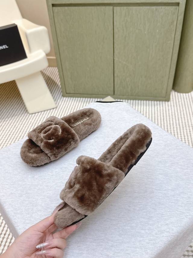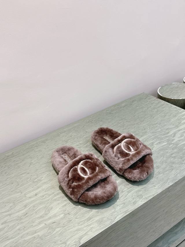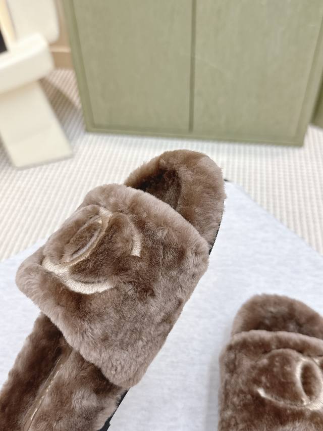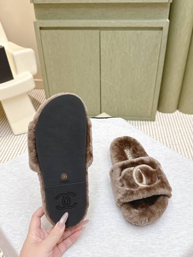 High-quality import | D1176 Chanel Classic All-Season Double C Furry Slippers! These furry slippers are absolutely adorable! The soft, fluffy fur is comfortable and warm. Perfect for autumn and winter, they look effortlessly stylish with socks. Made with imported wool, they have a delicate, soft, and silky feel. They also feature an EVA foam outsole. Sizes: #35-39, 40, 41 (custom sizes available).