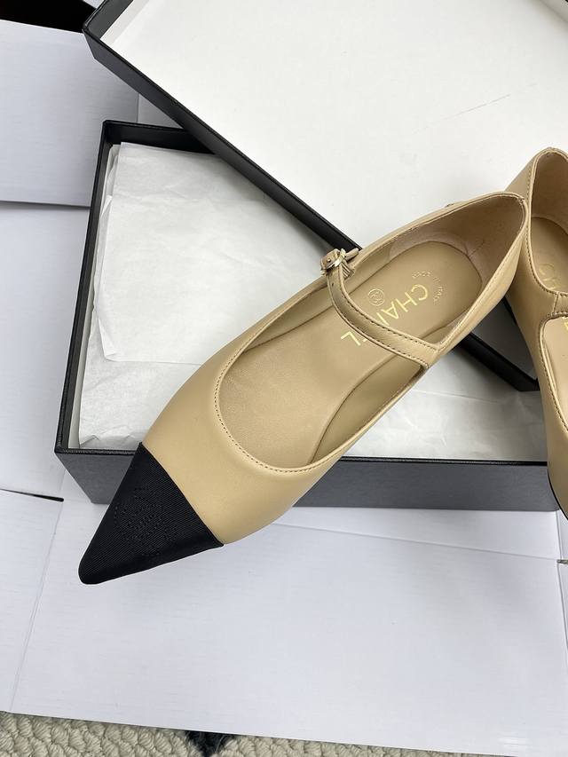 High-quality imported Chanel Mary Jane shoes in a high-end box. These new pointed-toe flat shoes (model 25Ss) are like a necklace for a goddess. They offer excellent support and make the heel look slimmer. They are truly exquisite! The retro Mary Jane style is just perfect. I personally love this classic combination; it has a vintage Chanel vibe reminiscent of the 80s. The design is novel and fashionable, the craftsmanship is perfect, and the mixed sheepskin design is stunning. They are very slimming and flattering. I think every girl should own a pair. Most importantly, the color is eye-catching. "Walking like the wind" doesn't even begin to describe how effortlessly they feel. A shoe you'll never want to put down! These Chanel Mary Jane ballet flats are gorgeous! Many of my favorite celebrities and influencers are wearing them, which makes me love them even more. They're so girly and make you feel ethereal. They can be paired with various styles. White Mary Janes are rare, but Chanel makes them stand out. Simple design. Upper: Imported mixed sheepskin. Outsole: Italian imported genuine leather. Lining: Sheepskin. Size: #35-41. Sizes 40 and 41 are custom-made and non-refundable.