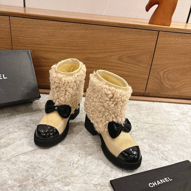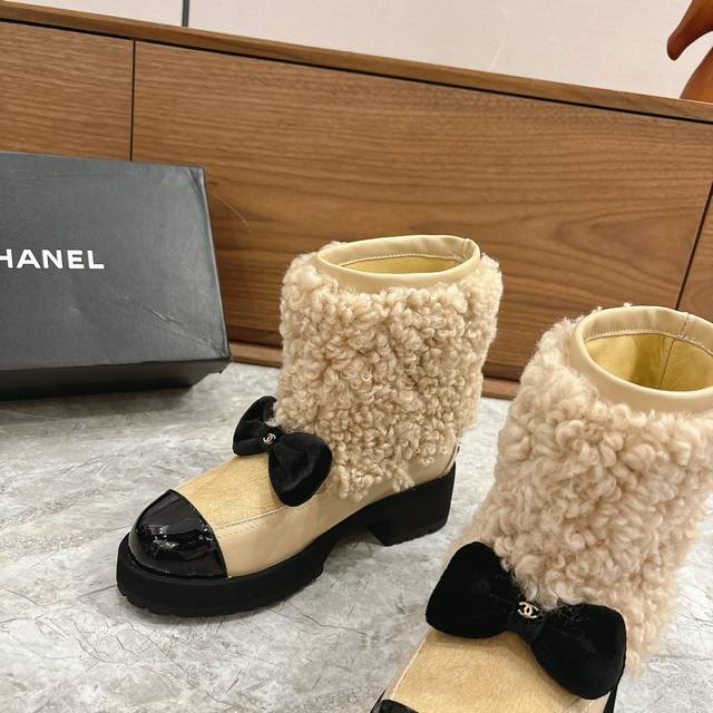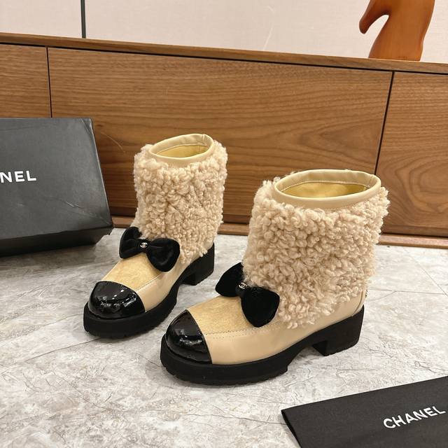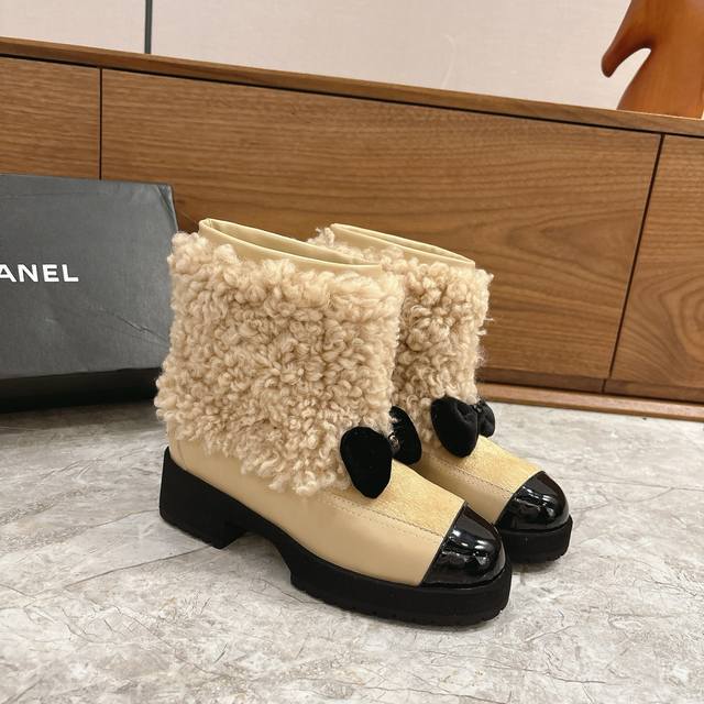 Hot Selling Chanel 25N Coco Neige Double C Bow Color-Blocked Platform Snow Boots DDD When the first snow of St. Moritz meets Parisian style DDD These snow boots become the epitome of winter fashion DDD The brand's iconic double C and lively bow intertwine DDD Classic genes are hidden in every detail, and the color-blocking design creates a visual dialogue between snow-capped mountains and the city DDD Replicating the fusion of sport and luxury aesthetics in Karl Lagerfeld's paintings. The platform design is subtly clever, continuing the retro trend DDD While quietly lengthening the leg line, giving you long legs instantly DDD From the ski resort to the streets, it can be paired with the casualness of a down jacket DDD or echo the elegance of a knitted dress DDD These snow boots are not just a cold-weather item DDD But also a concrete expression of the boldness and elegance of the Chanel woman DDD Let winter light up every snowy scene with iconic aesthetics. DDD uses original custom-made sheepskin and wool fabric. The inner lining and toe box are also made of sheepskin. Original mold-made custom-made non-slip outsole. Sizes: 35-39, 40, 41 (custom sizes available).